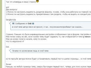 попробовал так сказать...Странно. Раньше это были индивидуальные настройки отображения тем в форуме. Настройки пользователя.в этой теме автор меня не просил, я так.. похулиганилпопробовал так сказать...