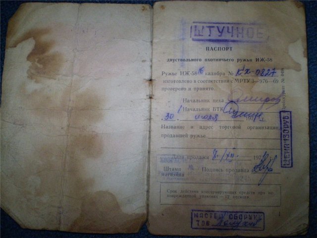 На "Ганзе",есть тема,"Гравировка на ИЖ-58(фото от владельцев)".Там есть фото и моего Ёжика.,но вот нет у меня в паспорте на него штампа "Штучное"