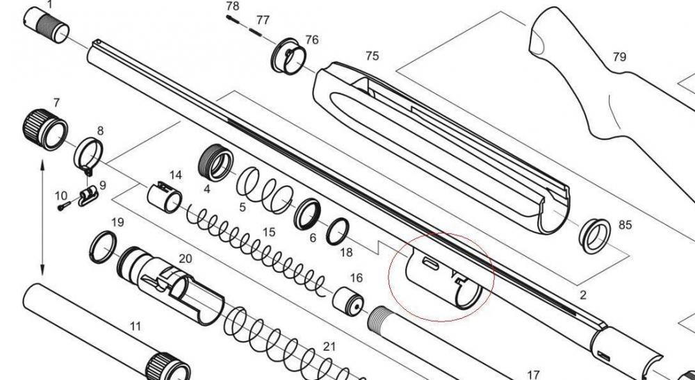 Если Вы курите, для своего успокоения проделайте следующее ( или попросите кого?) - заткните ветошью дульную часть ствола (где мушка) и дуньте дымом в ствол со стороны патронника. Дым пойдет как раз из той ШТУКОВИНЫ, что Вы обвели на схеме.