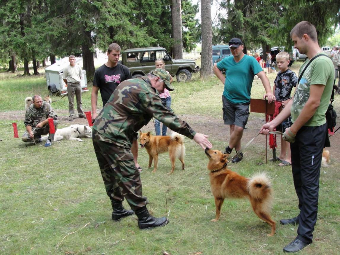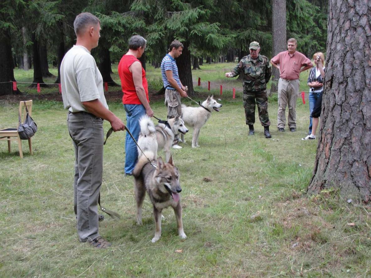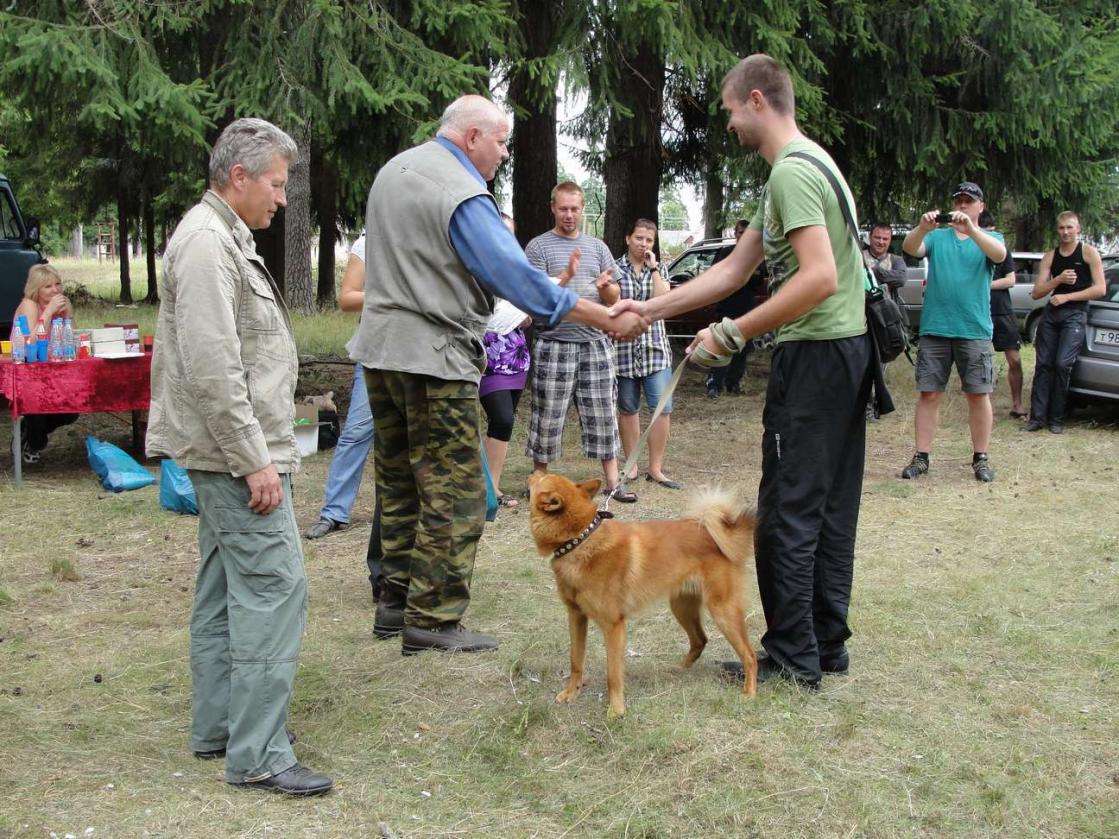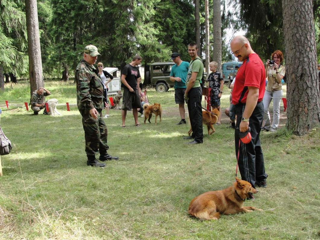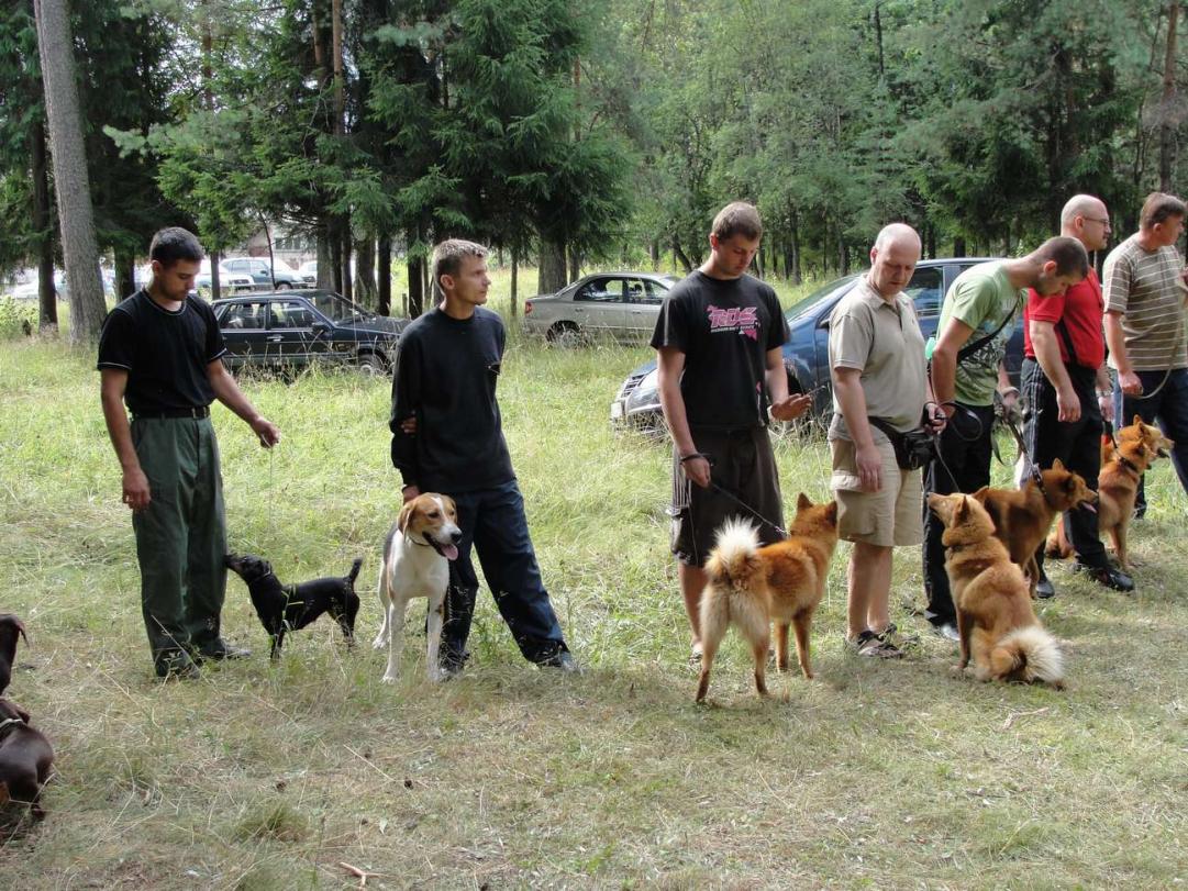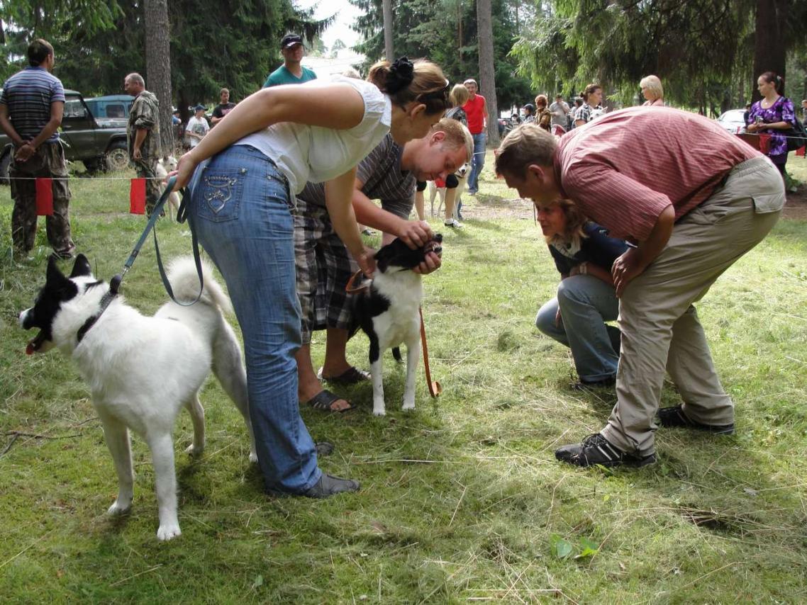 С не большим опозданием, но все таки хочется сказать пару слов о прошедшей выставке. Погода была к нам благосклонна. Такое ощущение что в этот день, только над гостеприимной Лугай светило солнце. И мы из Питера, и ребята прибывшие с о стороны Пскова всю дорогу ехали под дождем. Выставка проходила в старом парке, под сенью огромных елей , от чего все участники , как владельцы так и их питомцы ,чувствовали себя ну очень комфортно. Собачек было не много, в основном лайки, но это не сколько не повлияло на атмосферу праздника . А теплота и радушие с которым нас встретили устроители выставки и вовсе позволили нам себя чувствовать как дома в кругу старых , добрых друзей. Что касаемо участников выставки, конечно хотелось бы что бы их было значительно больше. Чтоб не сидели они со своими питомцами по домам, а приходили на мероприятия подобного рода. Где как не на них мы сможем увидеть ваших питомцев , настоящее и будущее нашего охотничьего собаководства .Как пример , хочется вспомнить Татьяну Порфирьевну Капустину , старейшину нашего Клуба Кровного Собаководства при МОО ЛООиР, которая не пропускает практически ни одной выставки , и мало того что участвует в них с о своей собакой, так еще и предоставляет свои работы(она художник ) в качестве призов.