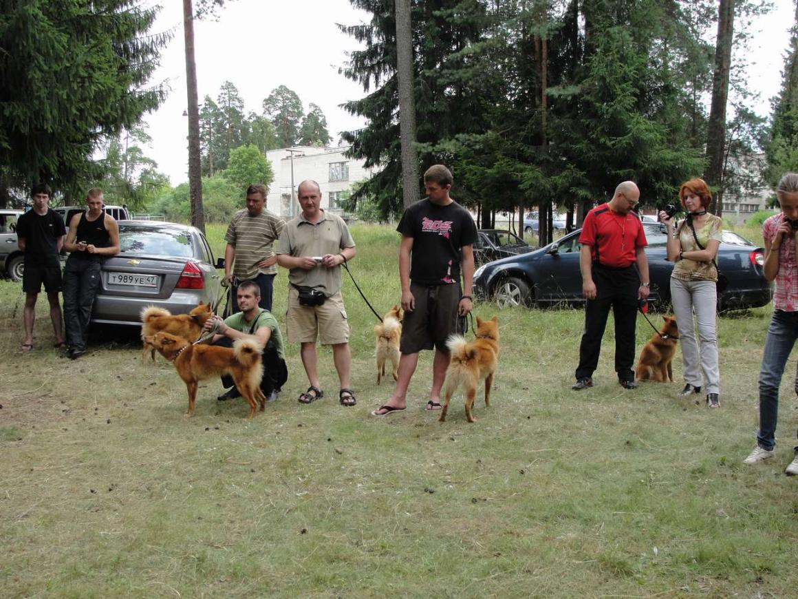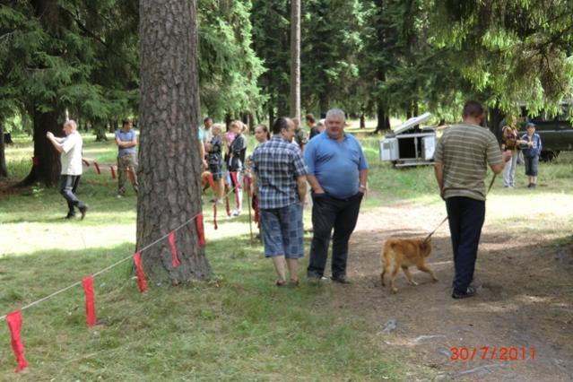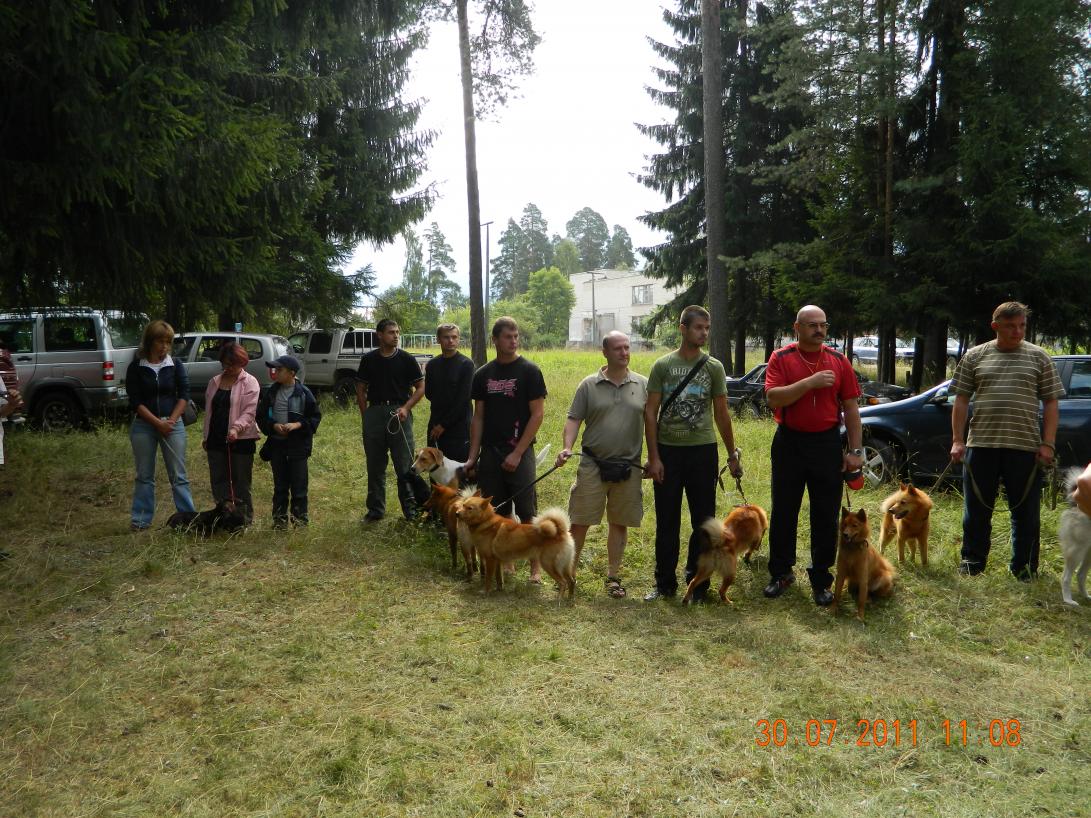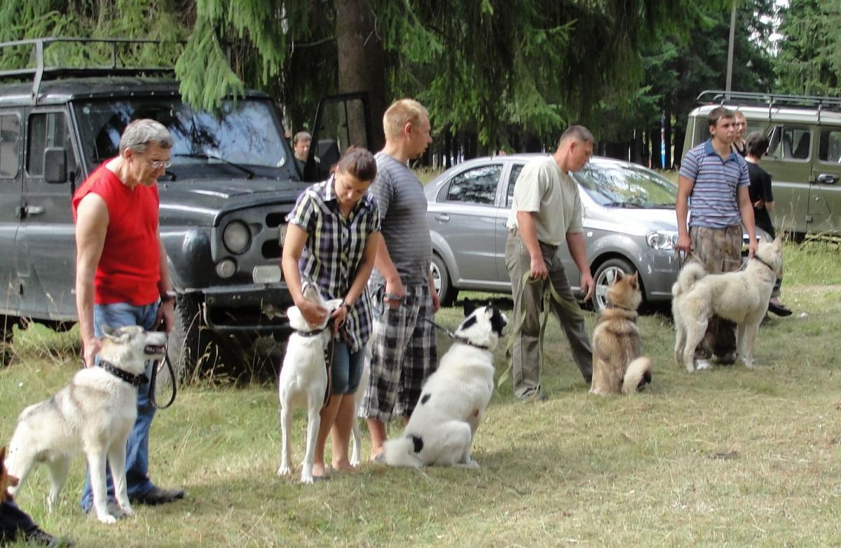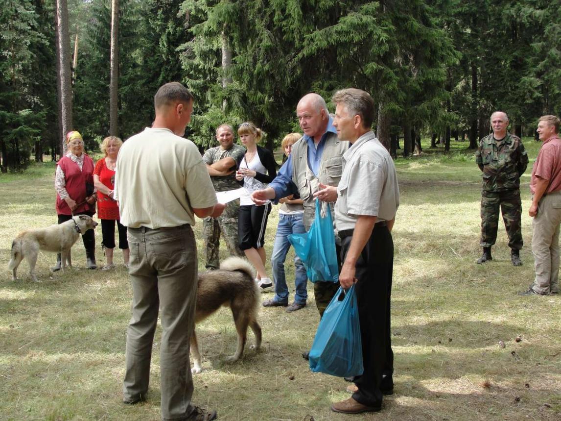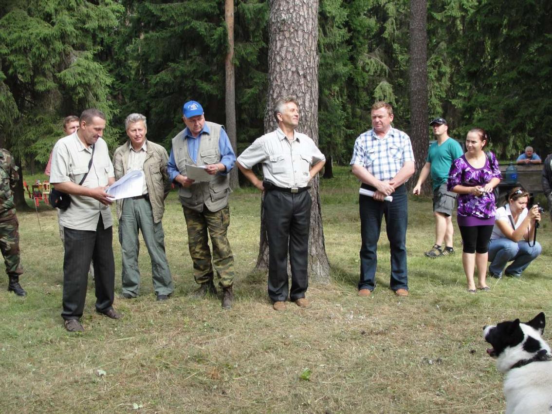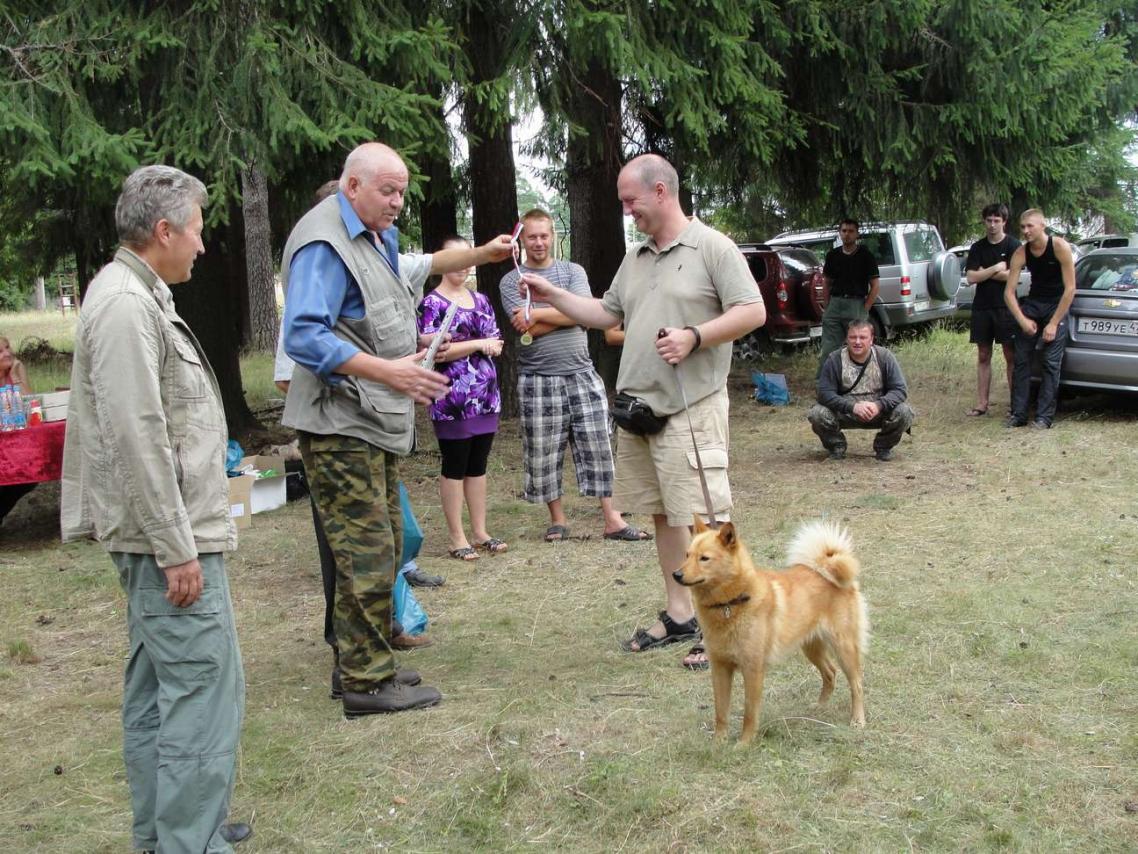 С не большим опозданием, но все таки хочется сказать пару слов о прошедшей выставке. Погода была к нам благосклонна. Такое ощущение что в этот день, только над гостеприимной Лугай светило солнце. И мы из Питера, и ребята прибывшие с о стороны Пскова всю дорогу ехали под дождем. Выставка проходила в старом парке, под сенью огромных елей , от чего все участники , как владельцы так и их питомцы ,чувствовали себя ну очень комфортно. Собачек было не много, в основном лайки, но это не сколько не повлияло на атмосферу праздника . А теплота и радушие с которым нас встретили устроители выставки и вовсе позволили нам себя чувствовать как дома в кругу старых , добрых друзей. Что касаемо участников выставки, конечно хотелось бы что бы их было значительно больше. Чтоб не сидели они со своими питомцами по домам, а приходили на мероприятия подобного рода. Где как не на них мы сможем увидеть ваших питомцев , настоящее и будущее нашего охотничьего собаководства .Как пример , хочется вспомнить Татьяну Порфирьевну Капустину , старейшину нашего Клуба Кровного Собаководства при МОО ЛООиР, которая не пропускает практически ни одной выставки , и мало того что участвует в них с о своей собакой, так еще и предоставляет свои работы(она художник ) в качестве призов.