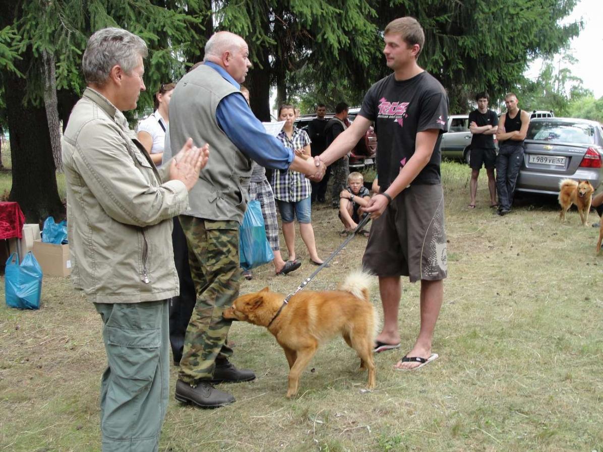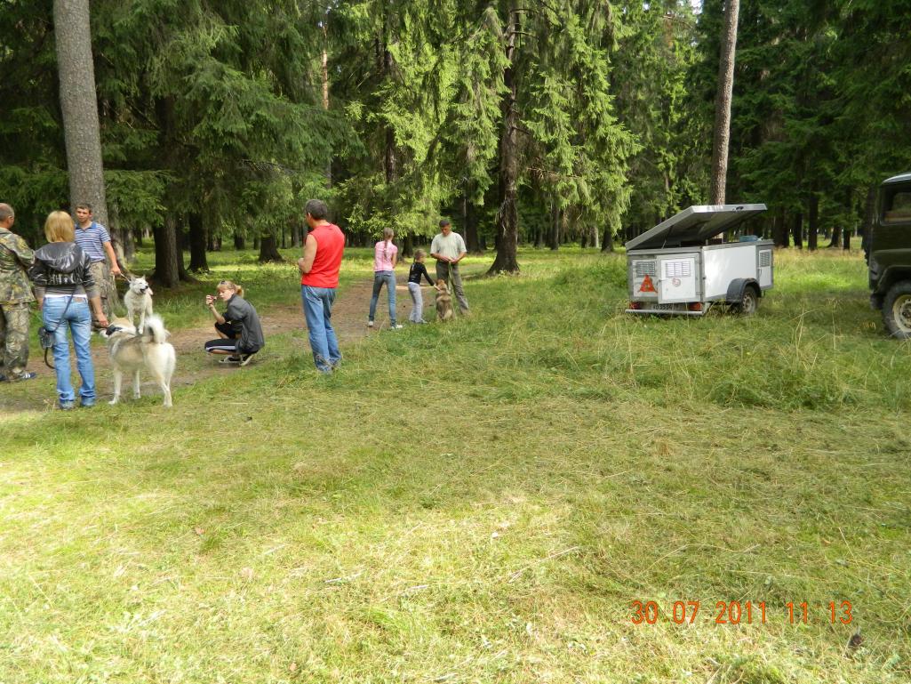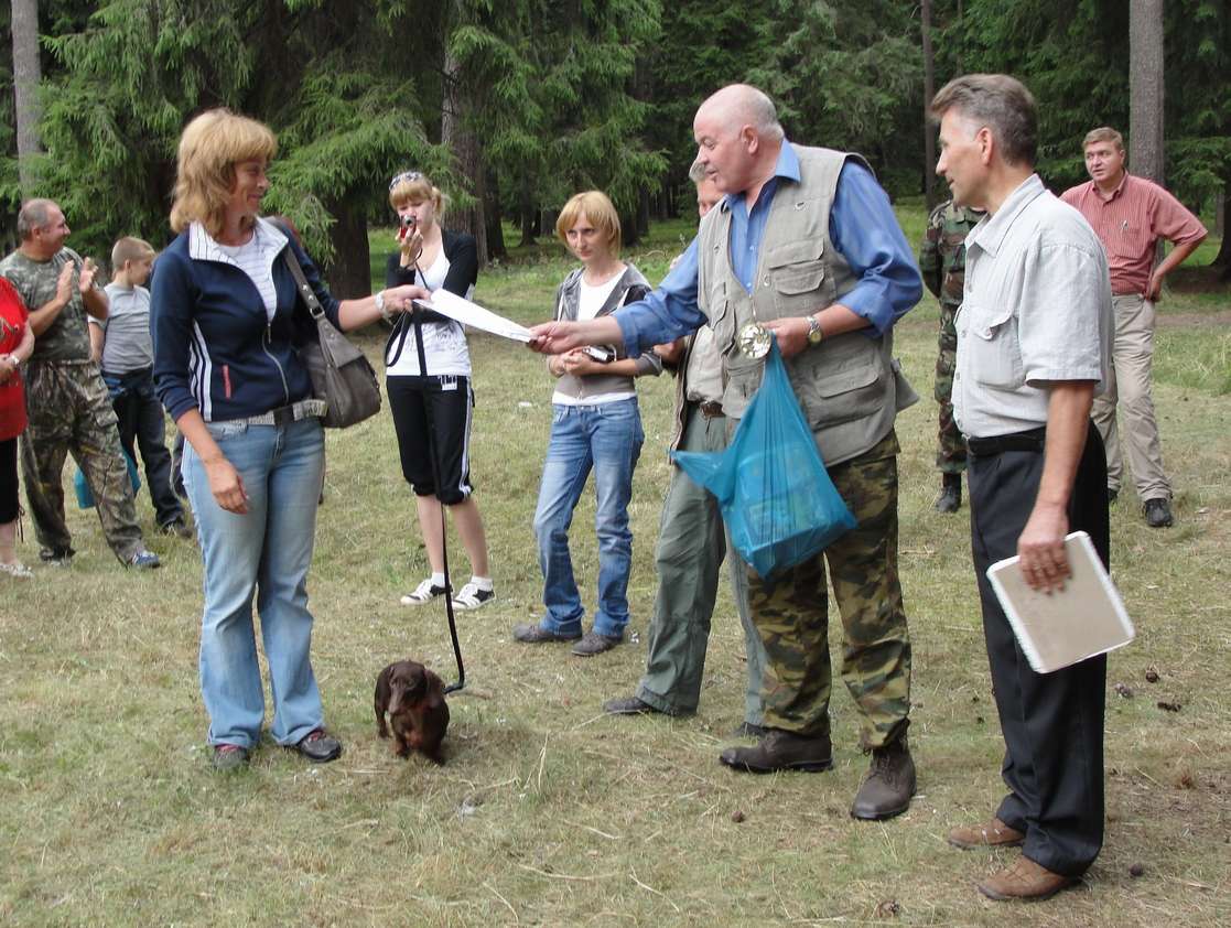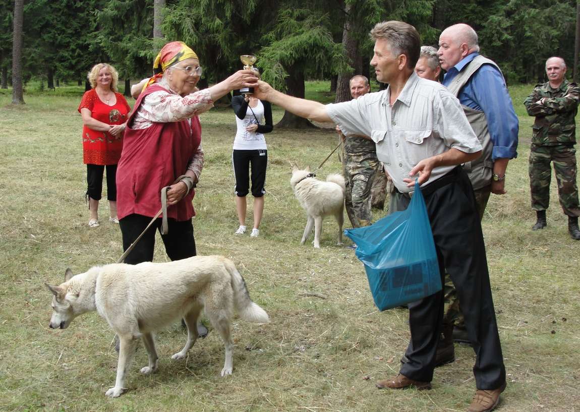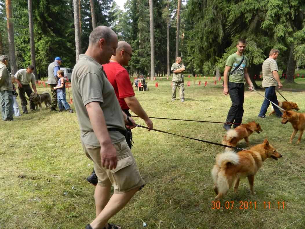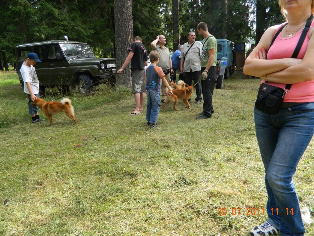 С не большим опозданием, но все таки хочется сказать пару слов о прошедшей выставке. Погода была к нам благосклонна. Такое ощущение что в этот день, только над гостеприимной Лугай светило солнце. И мы из Питера, и ребята прибывшие с о стороны Пскова всю дорогу ехали под дождем. Выставка проходила в старом парке, под сенью огромных елей , от чего все участники , как владельцы так и их питомцы ,чувствовали себя ну очень комфортно. Собачек было не много, в основном лайки, но это не сколько не повлияло на атмосферу праздника . А теплота и радушие с которым нас встретили устроители выставки и вовсе позволили нам себя чувствовать как дома в кругу старых , добрых друзей. Что касаемо участников выставки, конечно хотелось бы что бы их было значительно больше. Чтоб не сидели они со своими питомцами по домам, а приходили на мероприятия подобного рода. Где как не на них мы сможем увидеть ваших питомцев , настоящее и будущее нашего охотничьего собаководства .Как пример , хочется вспомнить Татьяну Порфирьевну Капустину , старейшину нашего Клуба Кровного Собаководства при МОО ЛООиР, которая не пропускает практически ни одной выставки , и мало того что участвует в них с о своей собакой, так еще и предоставляет свои работы(она художник ) в качестве призов.