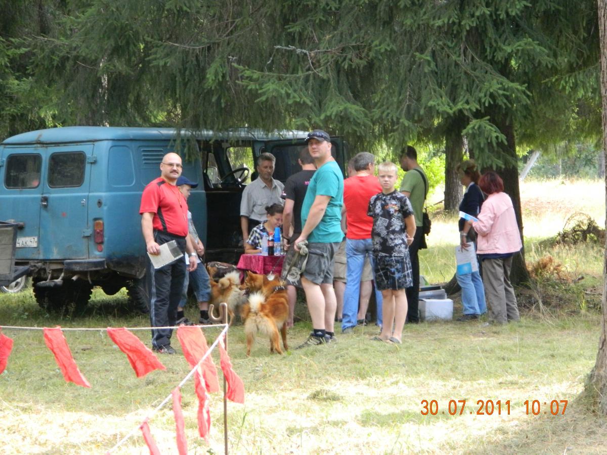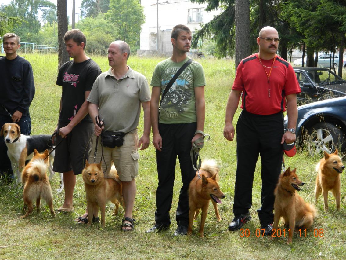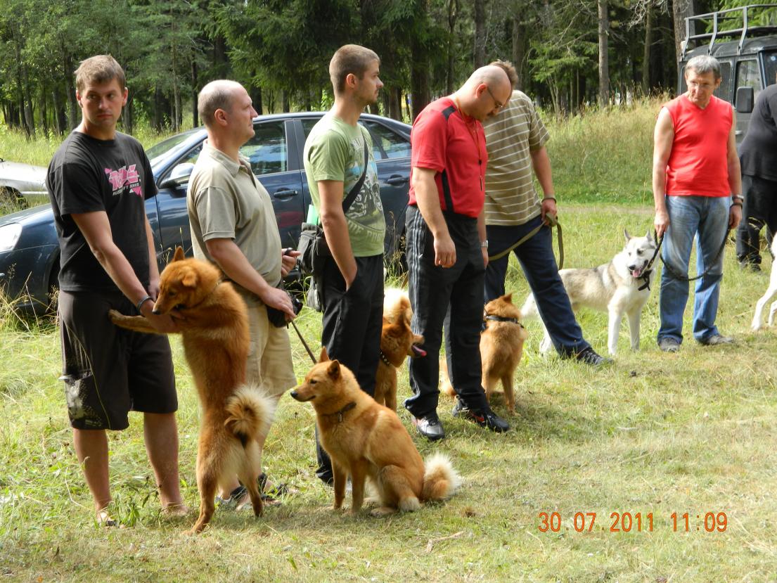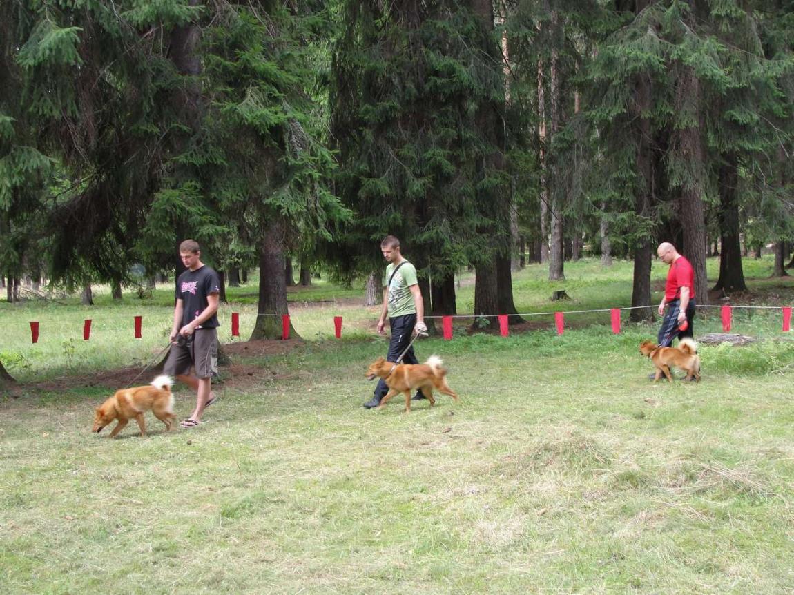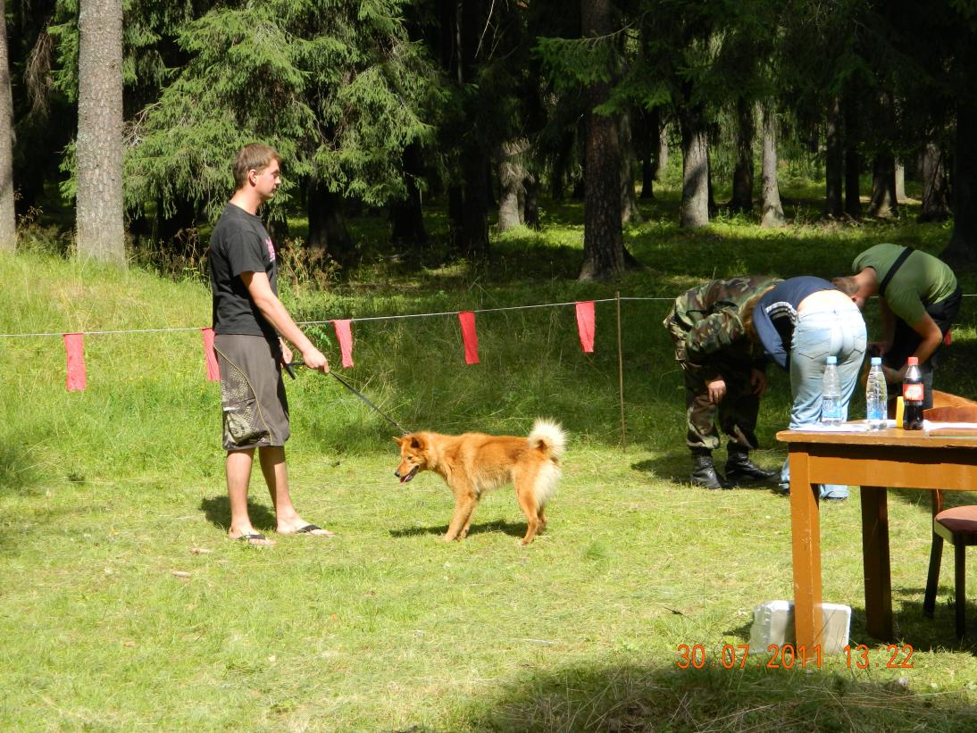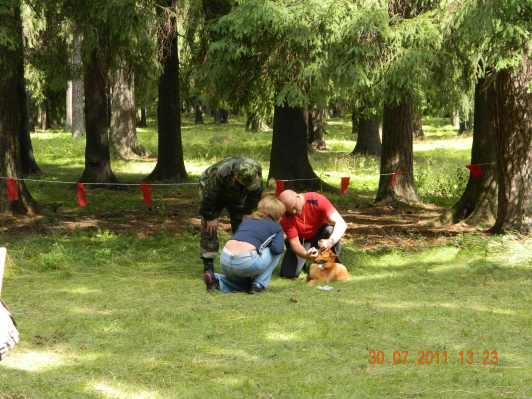 С не большим опозданием, но все таки хочется сказать пару слов о прошедшей выставке. Погода была к нам благосклонна. Такое ощущение что в этот день, только над гостеприимной Лугай светило солнце. И мы из Питера, и ребята прибывшие с о стороны Пскова всю дорогу ехали под дождем. Выставка проходила в старом парке, под сенью огромных елей , от чего все участники , как владельцы так и их питомцы ,чувствовали себя ну очень комфортно. Собачек было не много, в основном лайки, но это не сколько не повлияло на атмосферу праздника . А теплота и радушие с которым нас встретили устроители выставки и вовсе позволили нам себя чувствовать как дома в кругу старых , добрых друзей. Что касаемо участников выставки, конечно хотелось бы что бы их было значительно больше. Чтоб не сидели они со своими питомцами по домам, а приходили на мероприятия подобного рода. Где как не на них мы сможем увидеть ваших питомцев , настоящее и будущее нашего охотничьего собаководства .Как пример , хочется вспомнить Татьяну Порфирьевну Капустину , старейшину нашего Клуба Кровного Собаководства при МОО ЛООиР, которая не пропускает практически ни одной выставки , и мало того что участвует в них с о своей собакой, так еще и предоставляет свои работы(она художник ) в качестве призов.