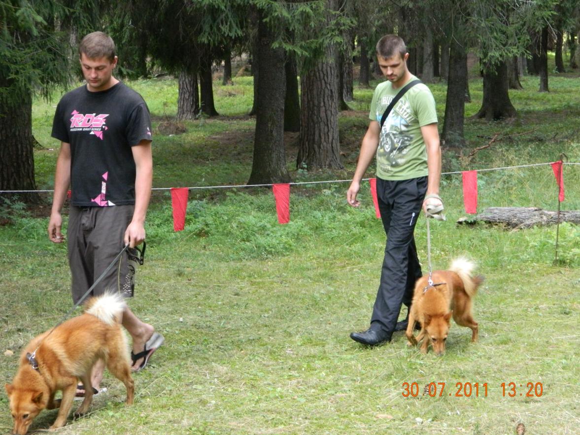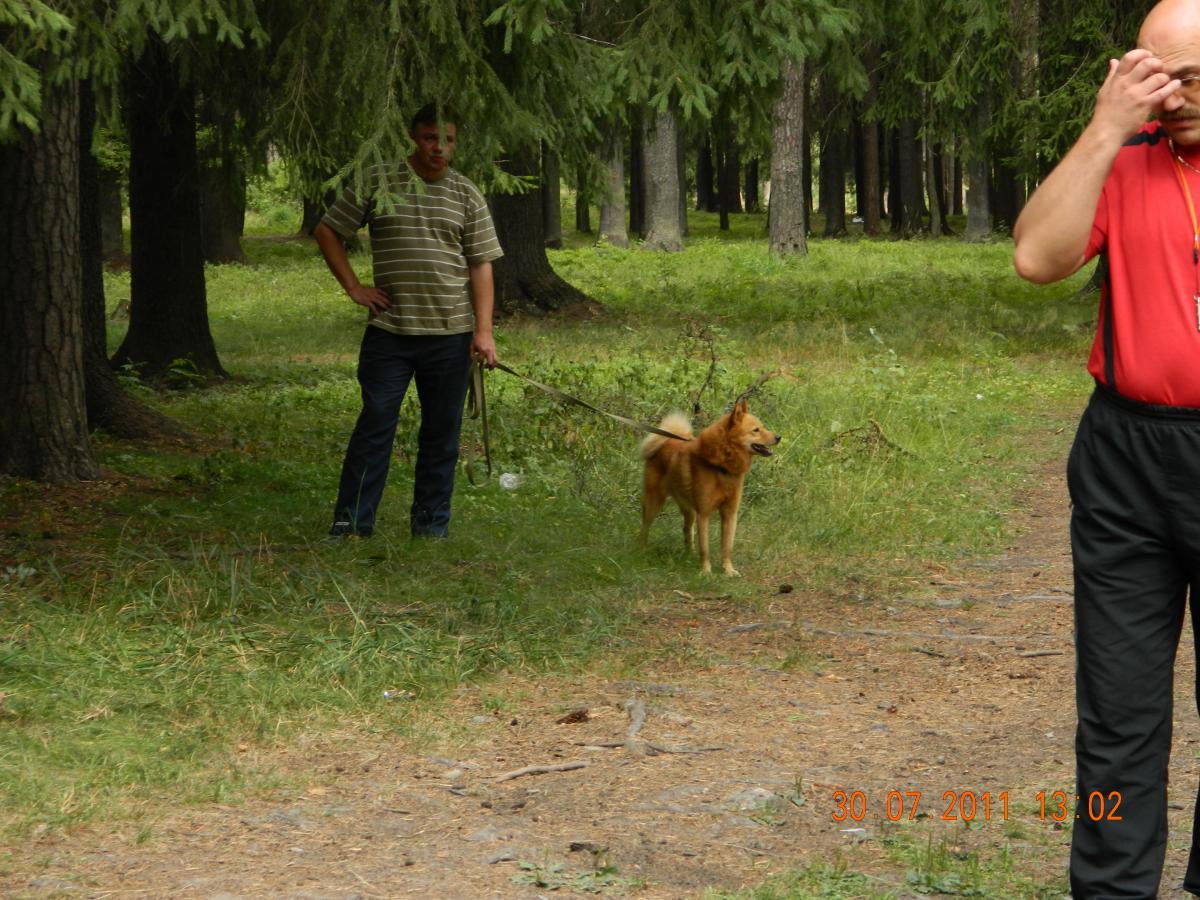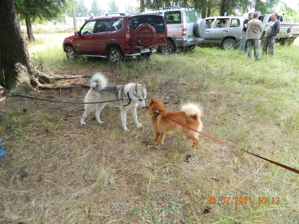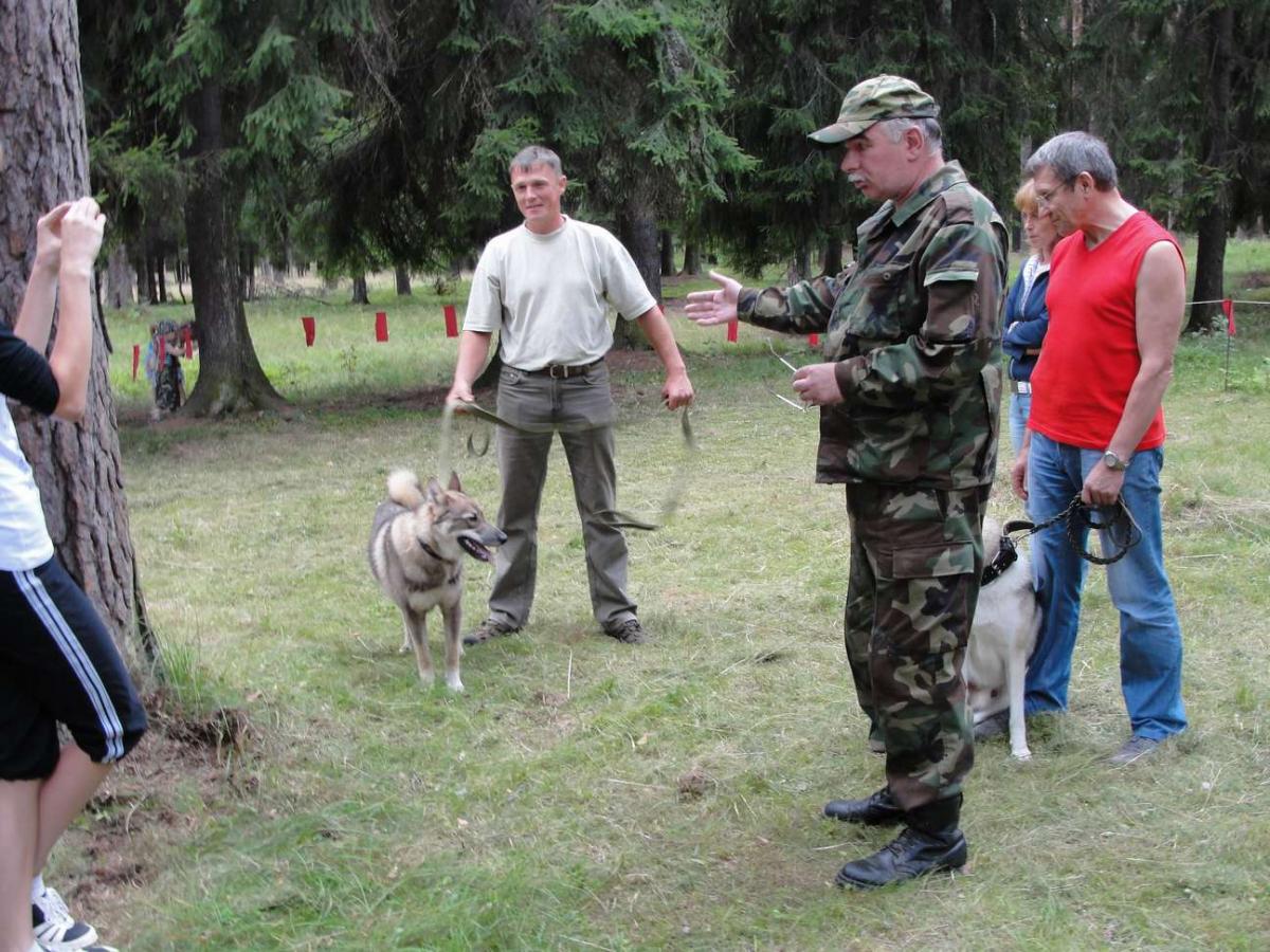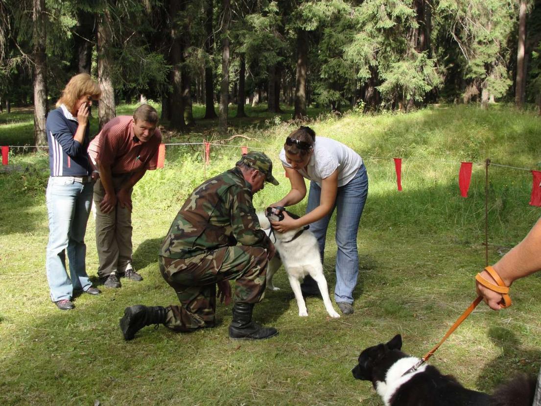 С не большим опозданием, но все таки хочется сказать пару слов о прошедшей выставке. Погода была к нам благосклонна. Такое ощущение что в этот день, только над гостеприимной Лугай светило солнце. И мы из Питера, и ребята прибывшие с о стороны Пскова всю дорогу ехали под дождем. Выставка проходила в старом парке, под сенью огромных елей , от чего все участники , как владельцы так и их питомцы ,чувствовали себя ну очень комфортно. Собачек было не много, в основном лайки, но это не сколько не повлияло на атмосферу праздника . А теплота и радушие с которым нас встретили устроители выставки и вовсе позволили нам себя чувствовать как дома в кругу старых , добрых друзей. Что касаемо участников выставки, конечно хотелось бы что бы их было значительно больше. Чтоб не сидели они со своими питомцами по домам, а приходили на мероприятия подобного рода. Где как не на них мы сможем увидеть ваших питомцев , настоящее и будущее нашего охотничьего собаководства .Как пример , хочется вспомнить Татьяну Порфирьевну Капустину , старейшину нашего Клуба Кровного Собаководства при МОО ЛООиР, которая не пропускает практически ни одной выставки , и мало того что участвует в них с о своей собакой, так еще и предоставляет свои работы(она художник ) в качестве призов.