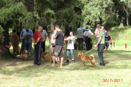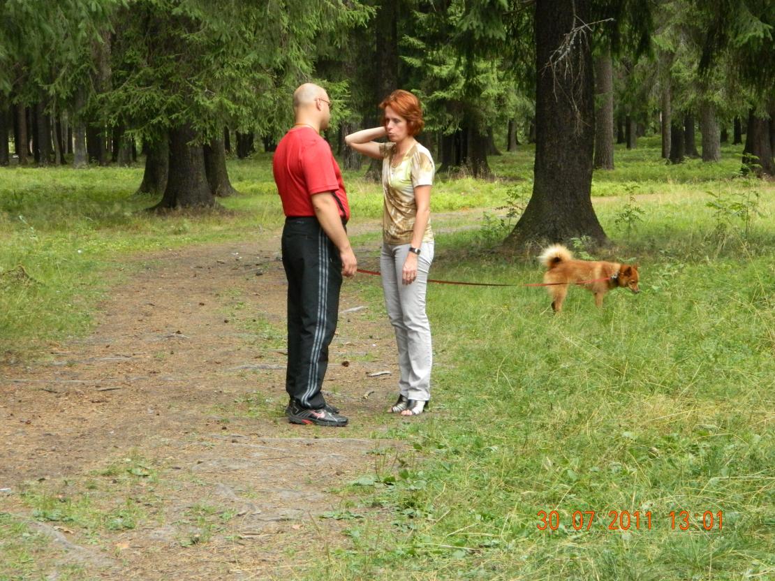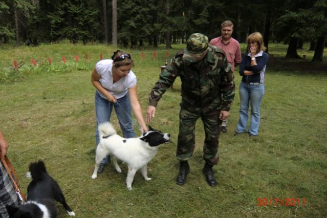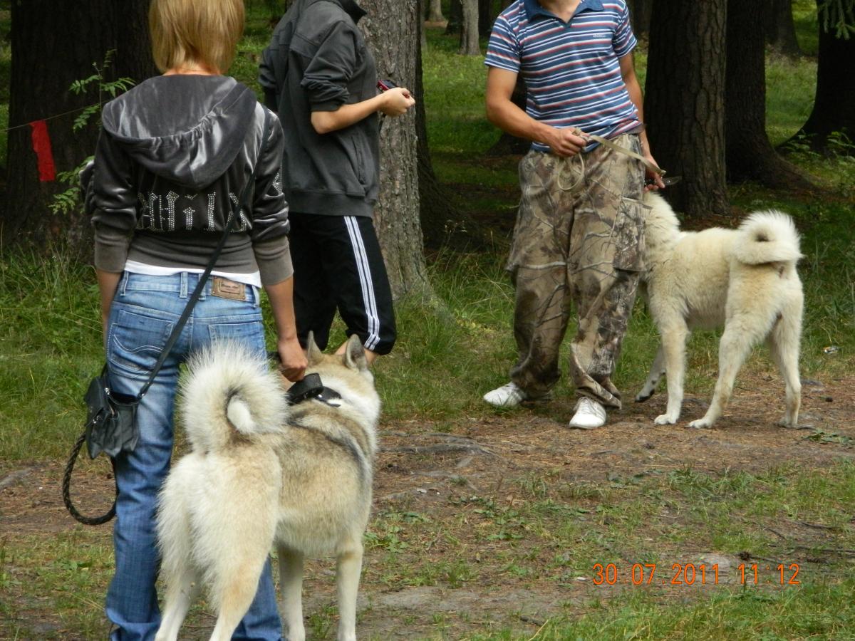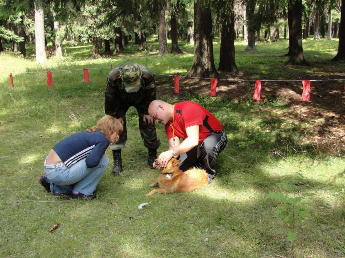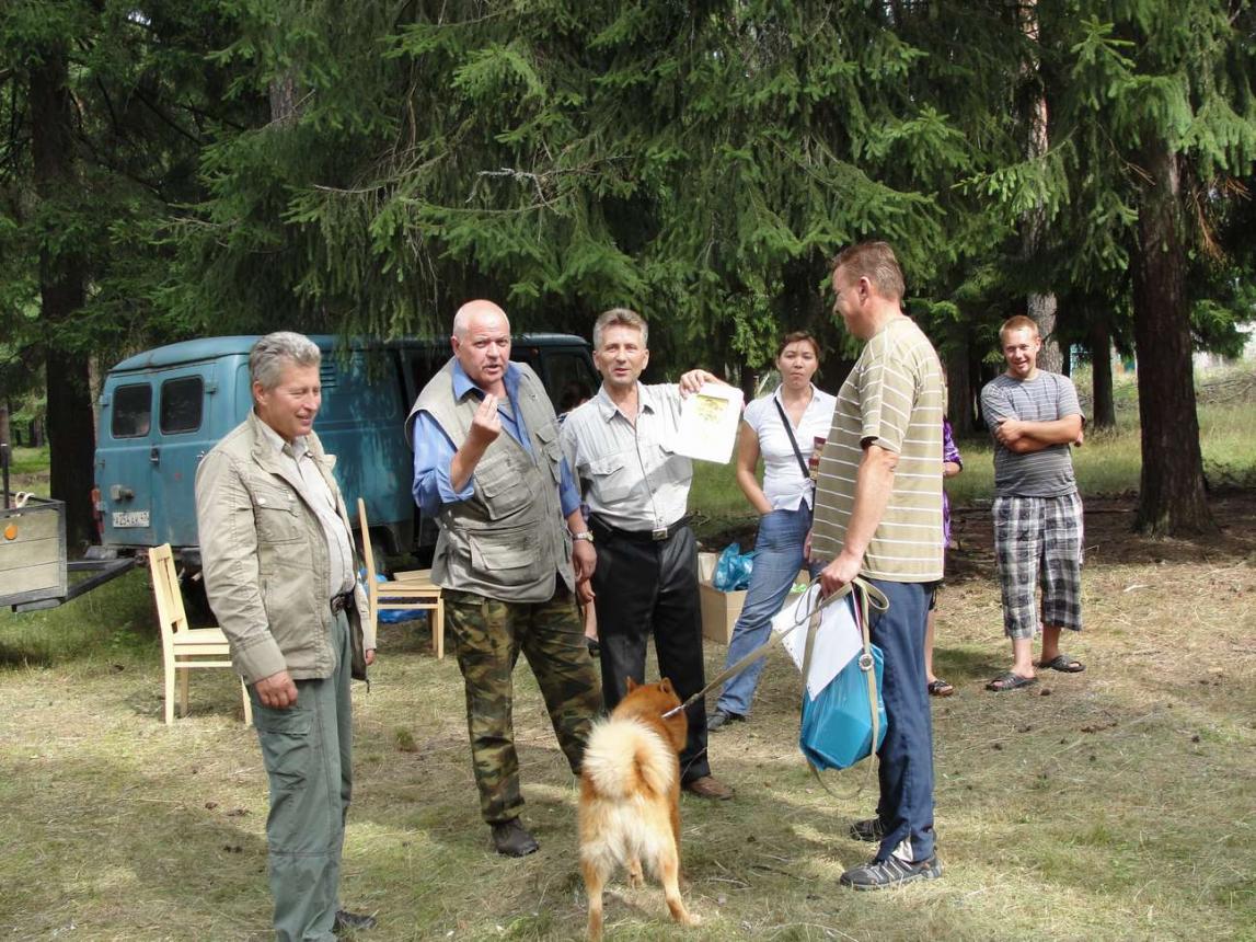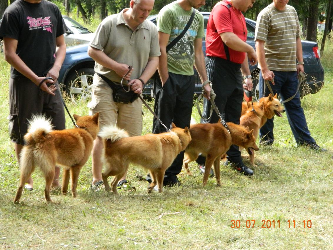 С не большим опозданием, но все таки хочется сказать пару слов о прошедшей выставке. Погода была к нам благосклонна. Такое ощущение что в этот день, только над гостеприимной Лугай светило солнце. И мы из Питера, и ребята прибывшие с о стороны Пскова всю дорогу ехали под дождем. Выставка проходила в старом парке, под сенью огромных елей , от чего все участники , как владельцы так и их питомцы ,чувствовали себя ну очень комфортно. Собачек было не много, в основном лайки, но это не сколько не повлияло на атмосферу праздника . А теплота и радушие с которым нас встретили устроители выставки и вовсе позволили нам себя чувствовать как дома в кругу старых , добрых друзей. Что касаемо участников выставки, конечно хотелось бы что бы их было значительно больше. Чтоб не сидели они со своими питомцами по домам, а приходили на мероприятия подобного рода. Где как не на них мы сможем увидеть ваших питомцев , настоящее и будущее нашего охотничьего собаководства .Как пример , хочется вспомнить Татьяну Порфирьевну Капустину , старейшину нашего Клуба Кровного Собаководства при МОО ЛООиР, которая не пропускает практически ни одной выставки , и мало того что участвует в них с о своей собакой, так еще и предоставляет свои работы(она художник ) в качестве призов.