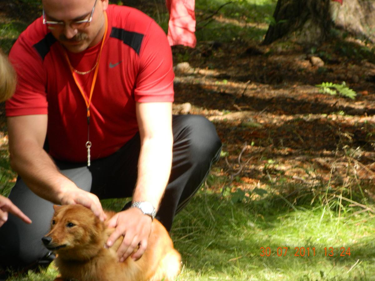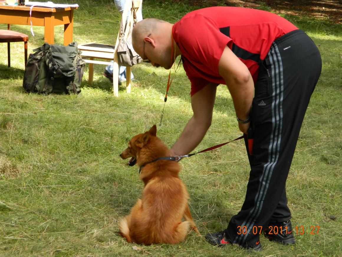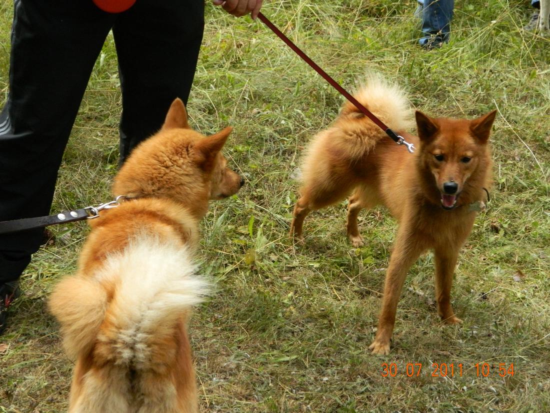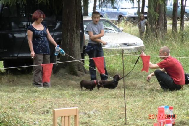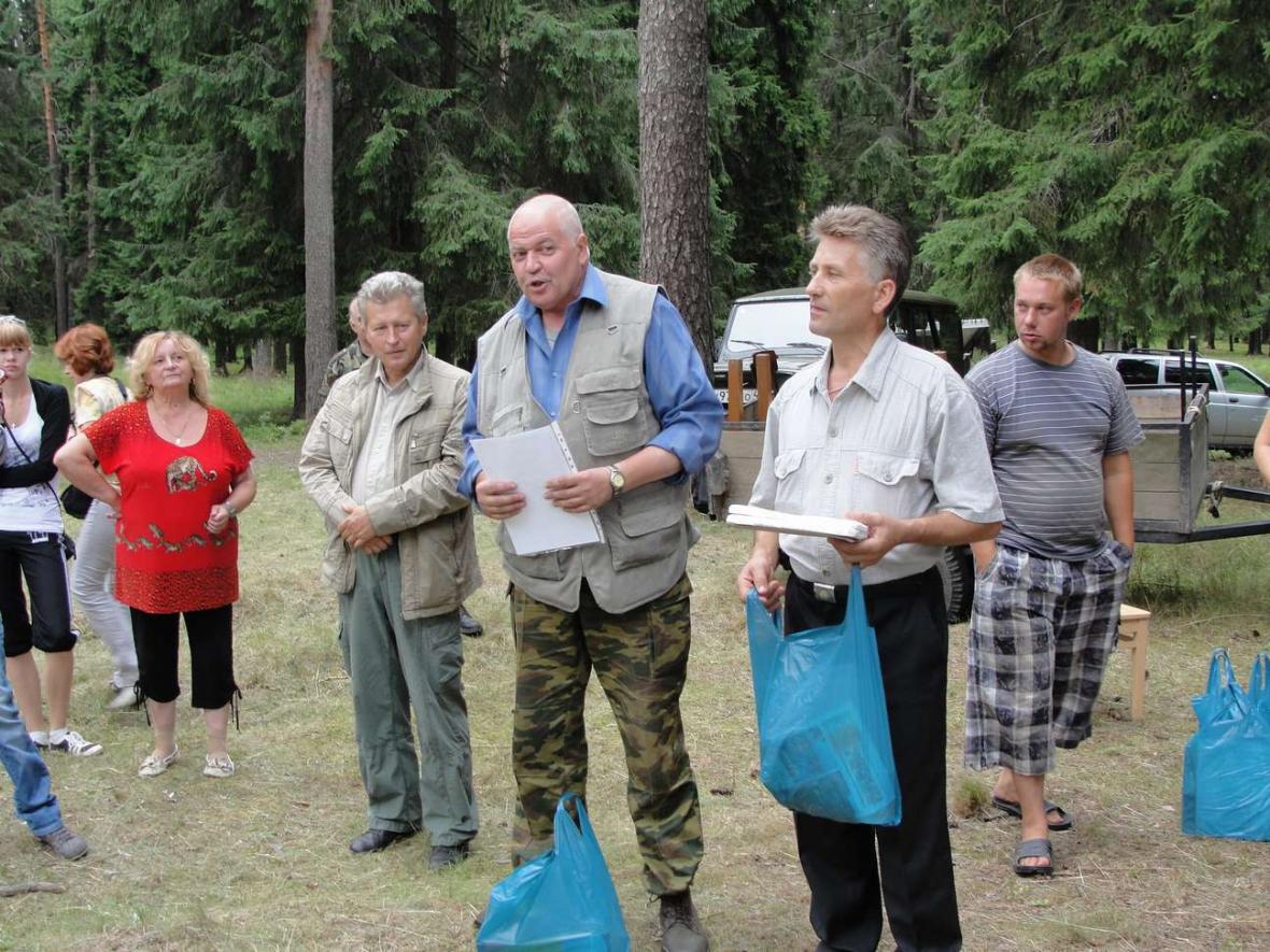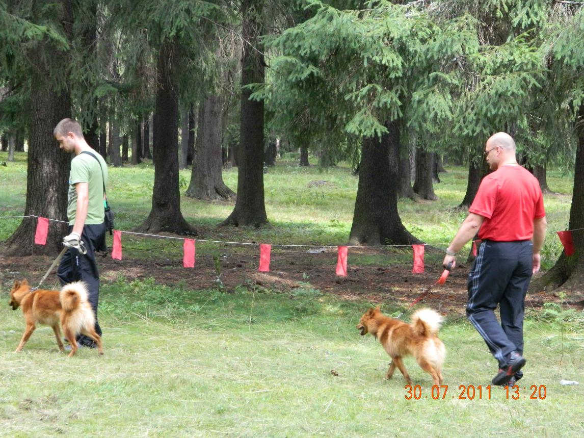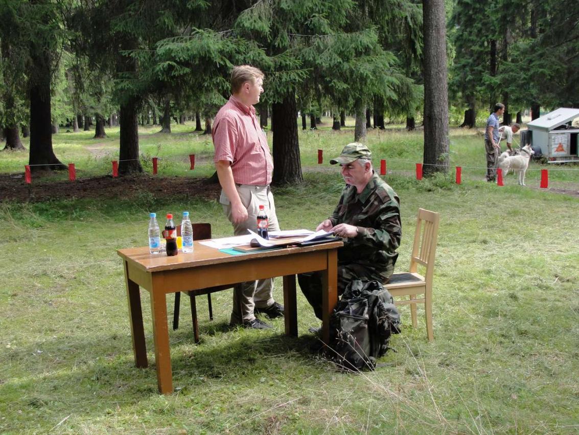 С не большим опозданием, но все таки хочется сказать пару слов о прошедшей выставке. Погода была к нам благосклонна. Такое ощущение что в этот день, только над гостеприимной Лугай светило солнце. И мы из Питера, и ребята прибывшие с о стороны Пскова всю дорогу ехали под дождем. Выставка проходила в старом парке, под сенью огромных елей , от чего все участники , как владельцы так и их питомцы ,чувствовали себя ну очень комфортно. Собачек было не много, в основном лайки, но это не сколько не повлияло на атмосферу праздника . А теплота и радушие с которым нас встретили устроители выставки и вовсе позволили нам себя чувствовать как дома в кругу старых , добрых друзей. Что касаемо участников выставки, конечно хотелось бы что бы их было значительно больше. Чтоб не сидели они со своими питомцами по домам, а приходили на мероприятия подобного рода. Где как не на них мы сможем увидеть ваших питомцев , настоящее и будущее нашего охотничьего собаководства .Как пример , хочется вспомнить Татьяну Порфирьевну Капустину , старейшину нашего Клуба Кровного Собаководства при МОО ЛООиР, которая не пропускает практически ни одной выставки , и мало того что участвует в них с о своей собакой, так еще и предоставляет свои работы(она художник ) в качестве призов.