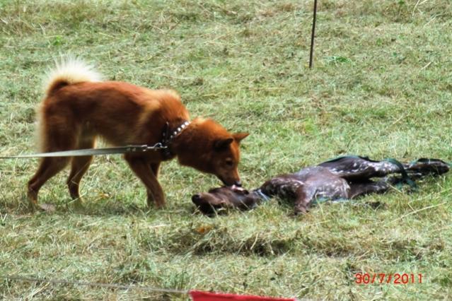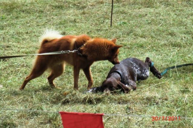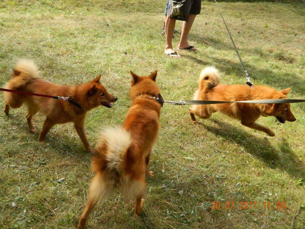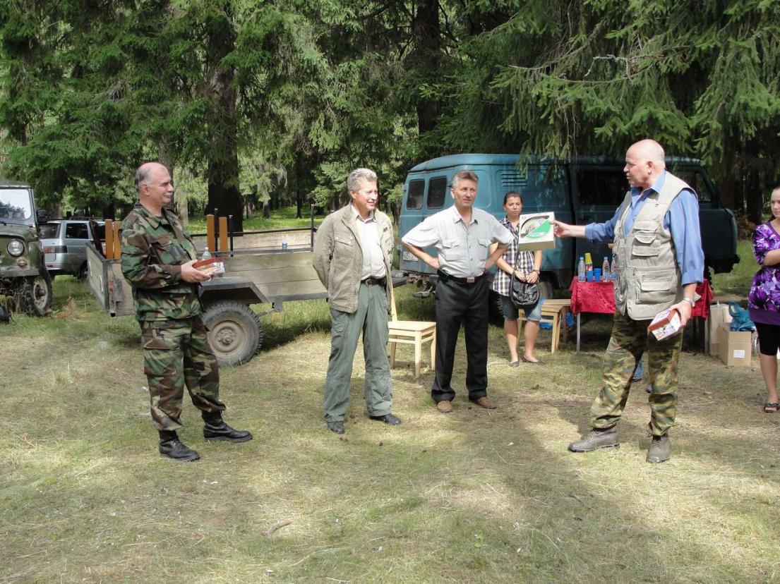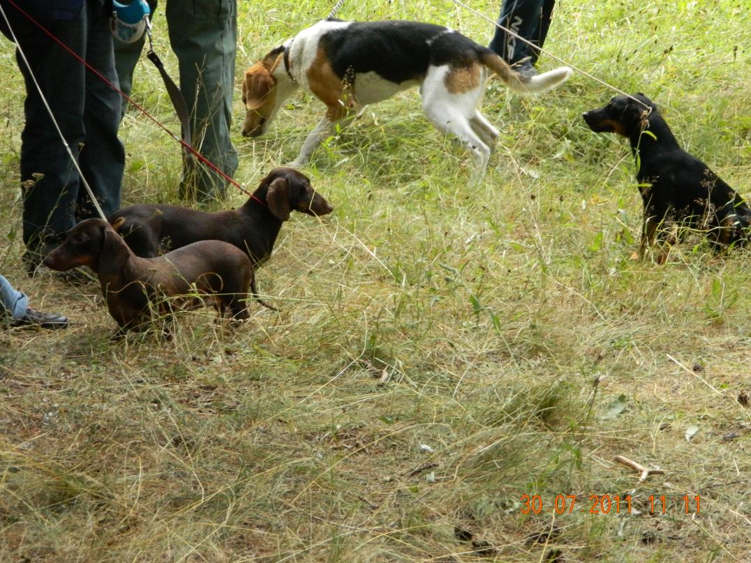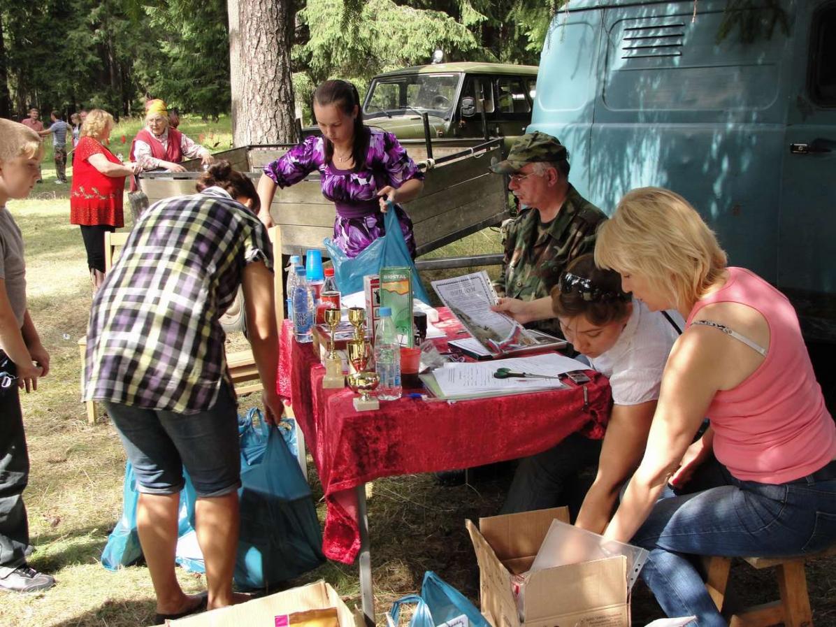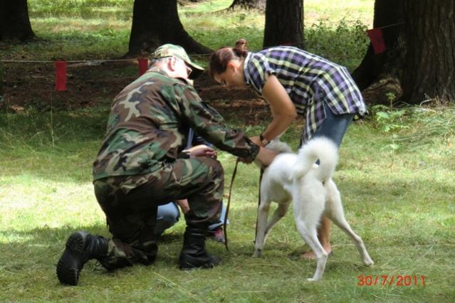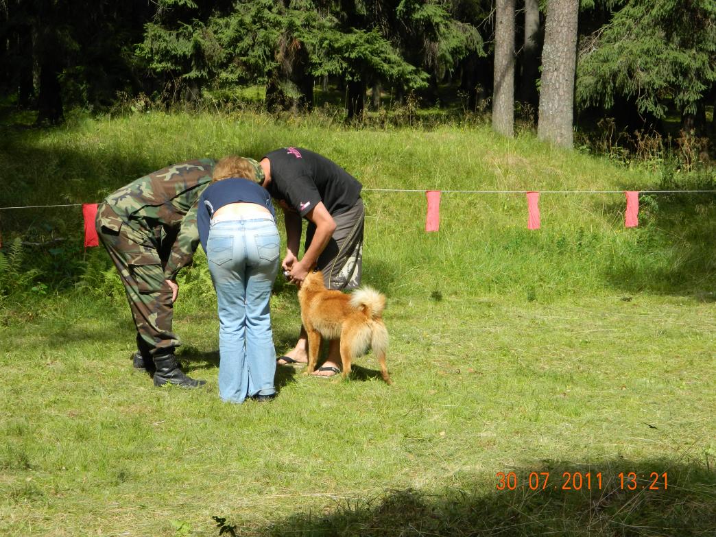 С не большим опозданием, но все таки хочется сказать пару слов о прошедшей выставке. Погода была к нам благосклонна. Такое ощущение что в этот день, только над гостеприимной Лугай светило солнце. И мы из Питера, и ребята прибывшие с о стороны Пскова всю дорогу ехали под дождем. Выставка проходила в старом парке, под сенью огромных елей , от чего все участники , как владельцы так и их питомцы ,чувствовали себя ну очень комфортно. Собачек было не много, в основном лайки, но это не сколько не повлияло на атмосферу праздника . А теплота и радушие с которым нас встретили устроители выставки и вовсе позволили нам себя чувствовать как дома в кругу старых , добрых друзей. Что касаемо участников выставки, конечно хотелось бы что бы их было значительно больше. Чтоб не сидели они со своими питомцами по домам, а приходили на мероприятия подобного рода. Где как не на них мы сможем увидеть ваших питомцев , настоящее и будущее нашего охотничьего собаководства .Как пример , хочется вспомнить Татьяну Порфирьевну Капустину , старейшину нашего Клуба Кровного Собаководства при МОО ЛООиР, которая не пропускает практически ни одной выставки , и мало того что участвует в них с о своей собакой, так еще и предоставляет свои работы(она художник ) в качестве призов.