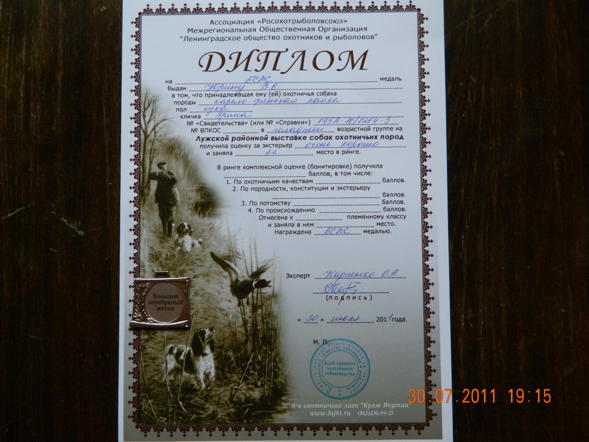 Второй момент. Врученные в номинациях «лучшая молодая собака» и «лучшая собака с дипломом по пушнине» акварели Т.П. Капустиной это произведения одного из лучших (возможно и за всю историю отечественной живописи) художников-анималистов России. А ну где, вот так, приехав на районную (!) выставку охотничьих собак можно получить в качестве приза истинное произведение искусства? Так что не пропустите следующую, 43-ю!