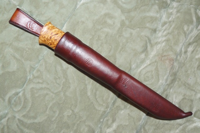 Ножны - оленья кожа, вкладыш ольха, вощенная нить, подвес на полукольцо, пропитка седельным воском на 4 раза.