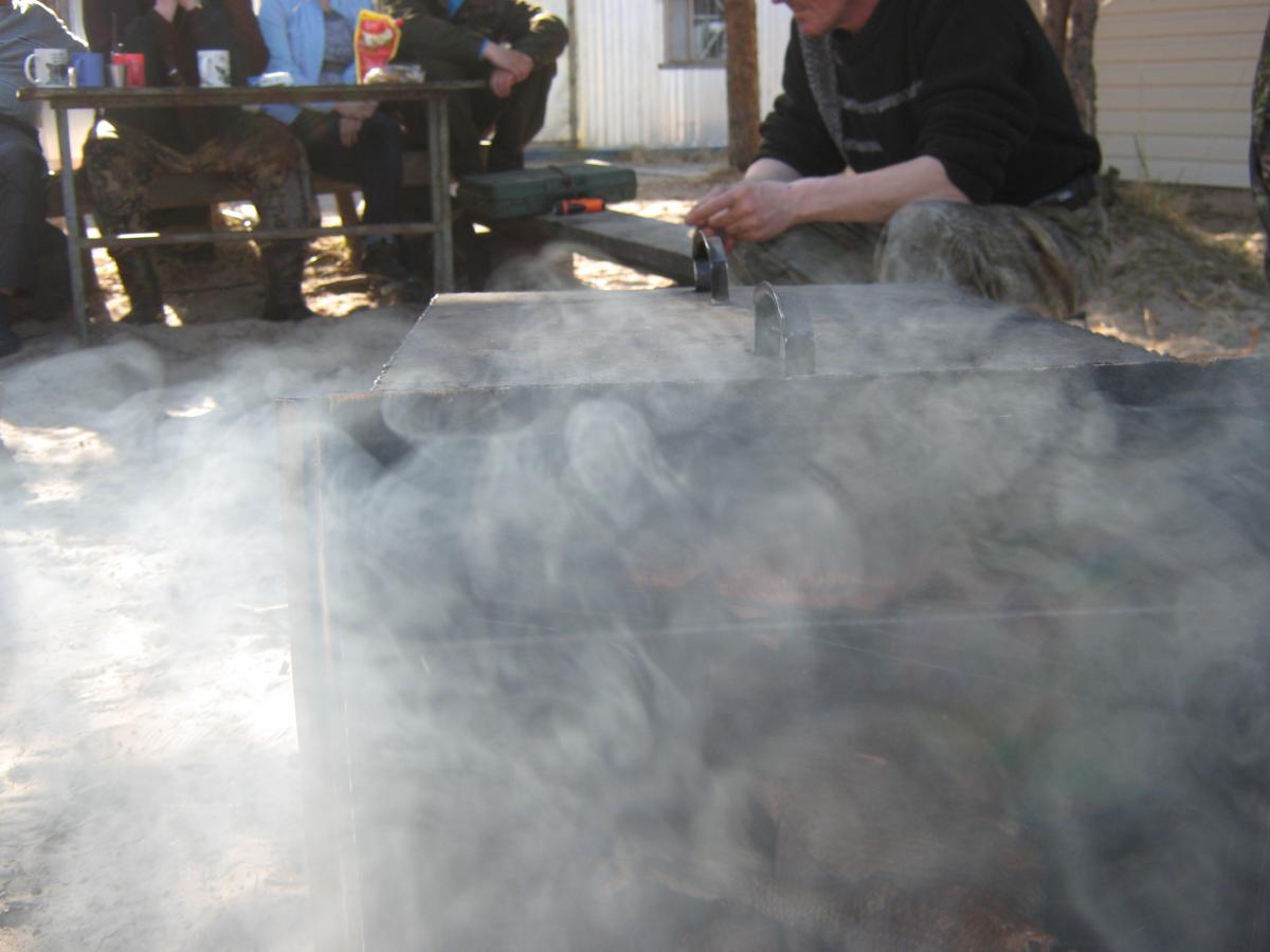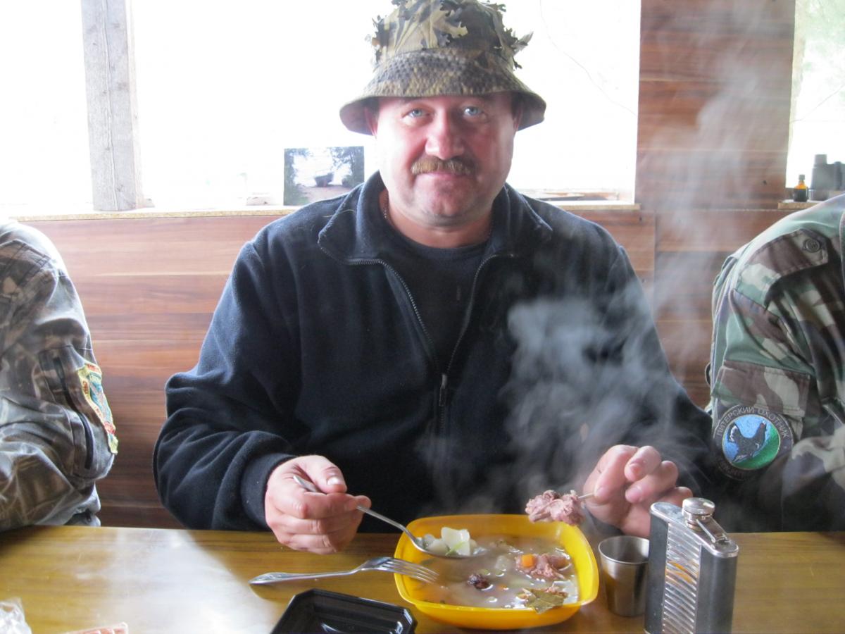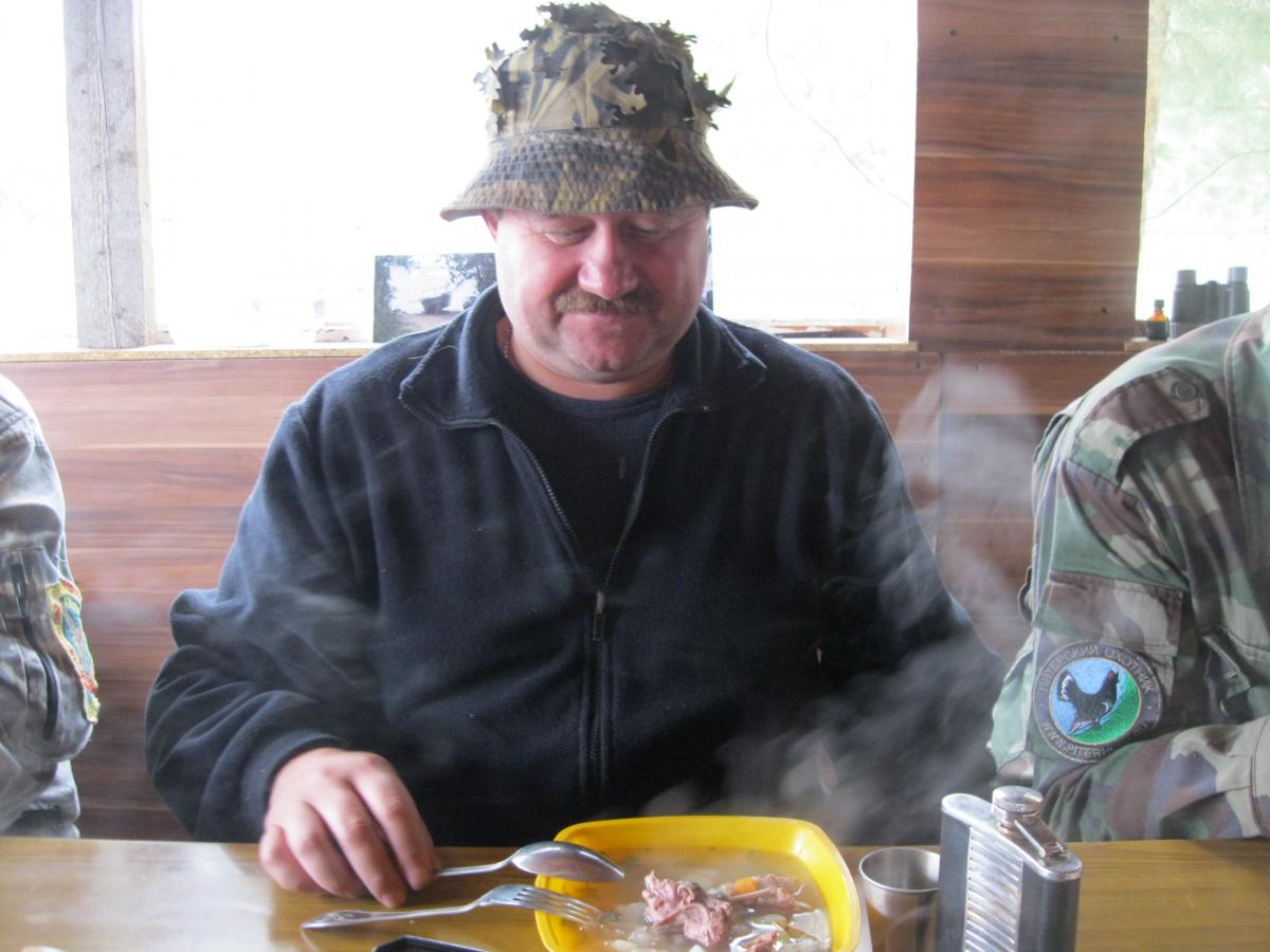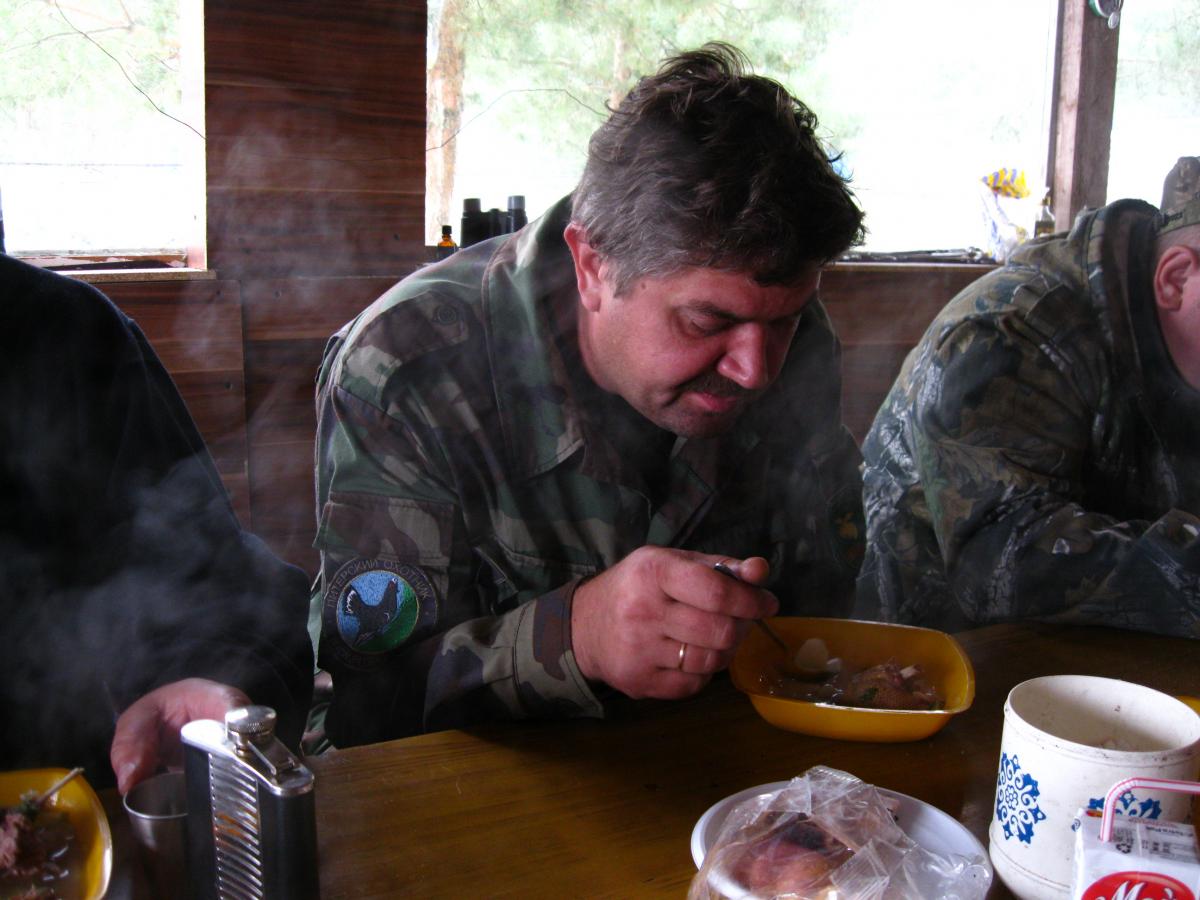 Вообще с утра была хорошая охота с добычей как положено! Потом была уха шулюм Тройной от Жехи ( ну он же спец!)