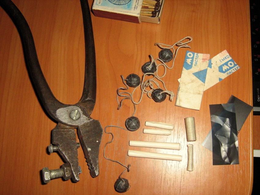 -в верхней половинке – маленьким (3-5 мм) сверлом и метчиком – для болтика- ограничителя глубины надреза картечины;