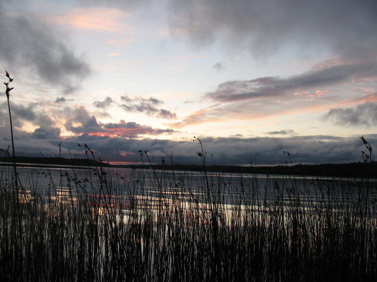 Гребли-гребли и наконец приплыли на место, за которое главный аутфиттер головой ручался. Лучше бы он за погоду ручался - не успели причались, хлынул стеной дождь. Не моросящий питерский дождик, а ДОЖДЬ. (Кстати, он из 6 дней пять стабильно лил). Так что ставились на мокрое, про ужин пришлось забыть, успел я на минутку к протоке выскочить и на всякий случай покрякал в новый манок с Кабеласа - Nasty Duck II. Не прошло 10 секунд - налет, стреляю и опс - утка с размаха рушится в стену хвоща. Ночлег отменяется - с фонарем ищу её до начала галлюцинаций, утром снова ищу - как сквозь землю провалилась. Настроение подпорчено.
