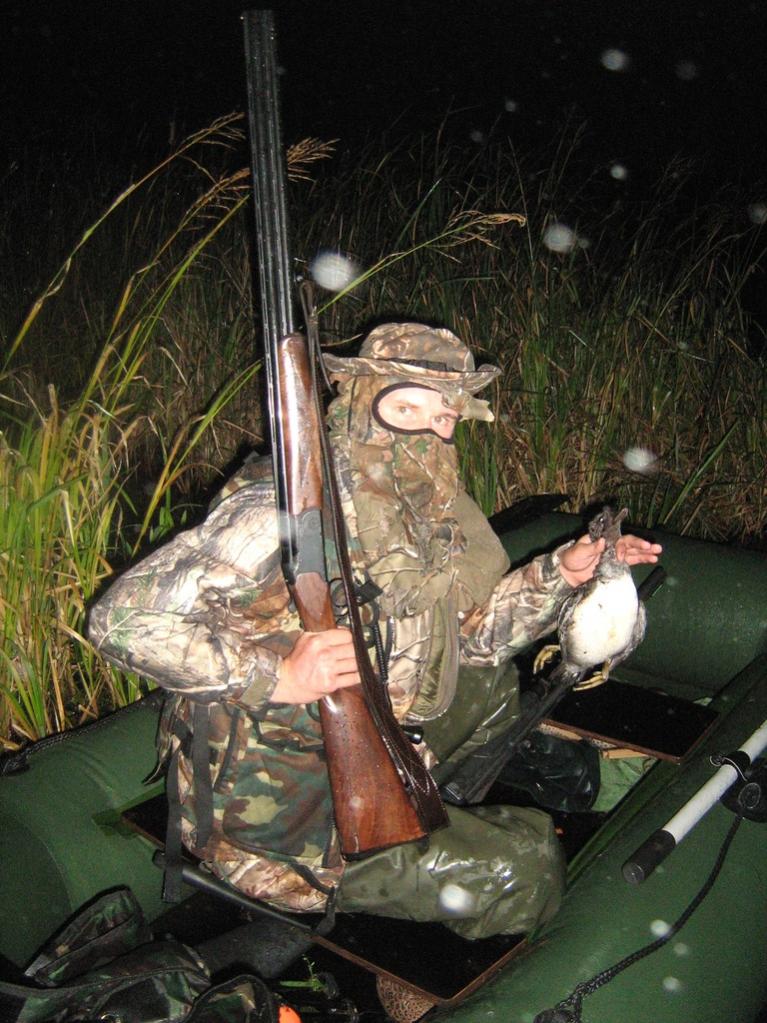 Утром аутфиттер (на самом деле - просто наш друг, у которого дом там в деревне, аутфиттером мы его в шутку звали) доводит план действий - одна группа с шестом на пропишке проламывается через протоку, вспугивая уток, остальные стоят на номерах, через которые эти утки полетят.