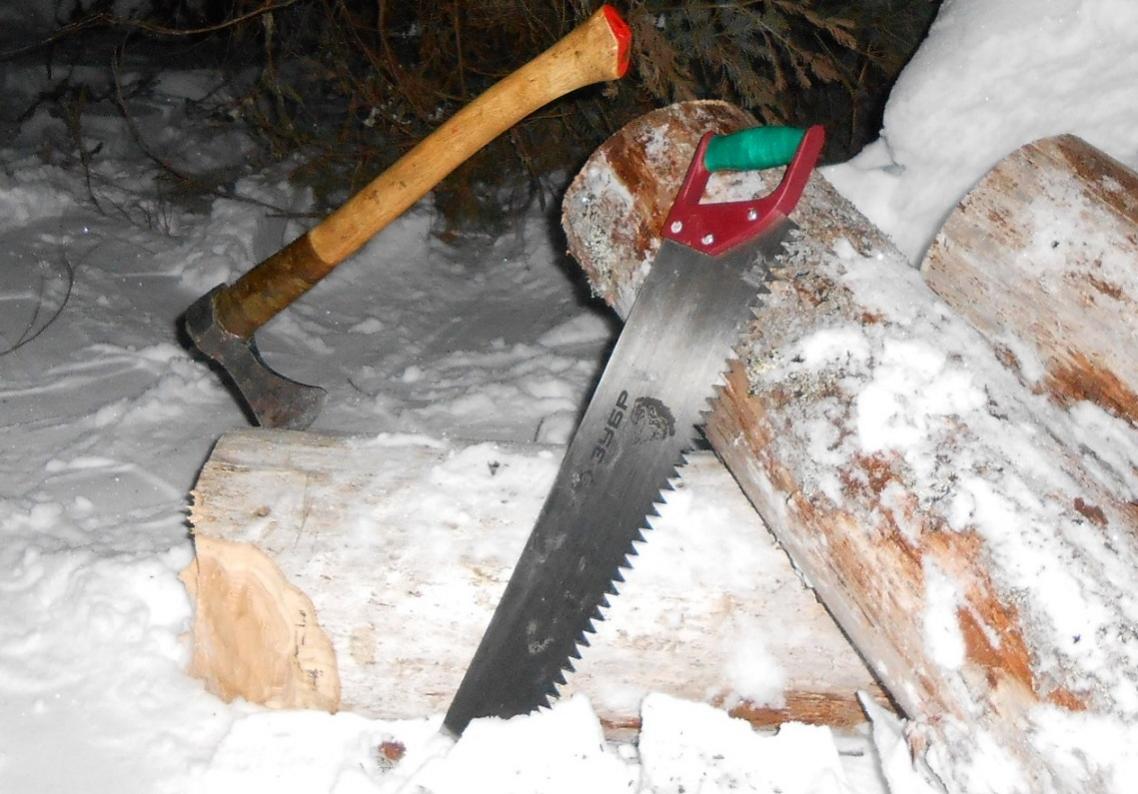 Так и лучку ничего не мешает. Какая разница то. Внизу снег.конец ножовки уходит в снег, ничего не мешает.