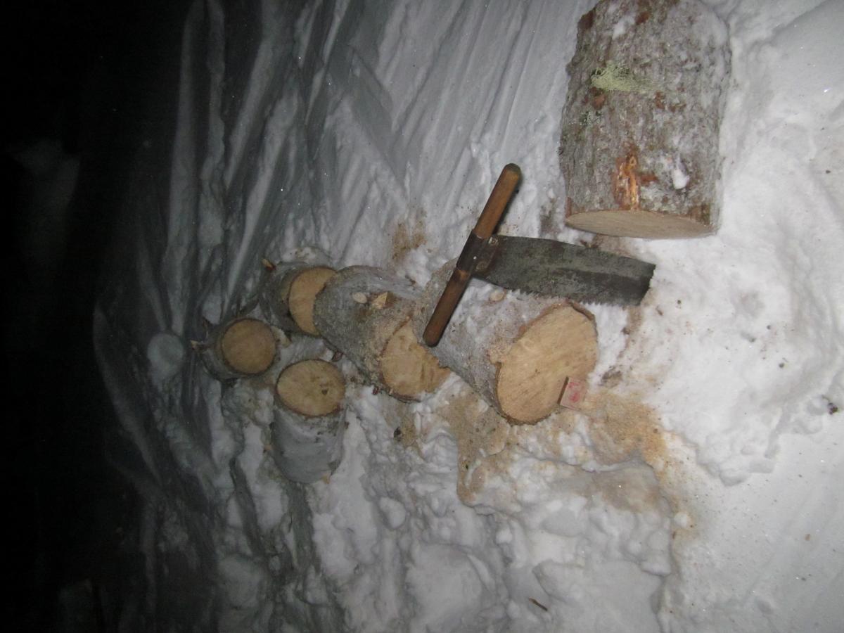 Вот вот! Спилил, она упала. Из снега только сучья торчат. Нужно раскряжевать. Я подхожу, выбираю любое место, только чтоб руки между сучьев просунуть, бывает встаю на ствол (так как снега у нс бываить больше чем по развилку). И пилю двумя руками двигая пилой вверх-вниз. конец ножовки уходит в снег, ничего не мешает.Потому пилишь стоячую