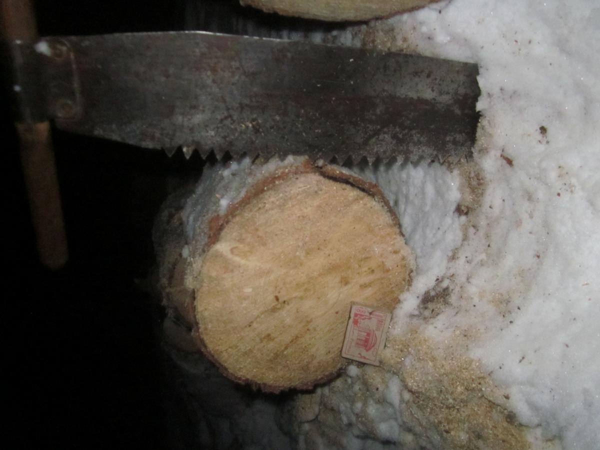 вот, с леса вернулся, специально замерил скорость работы ножовкой. Размеры бревна можно оценить, на распил средним темпом ушло ровно 2 минуты.