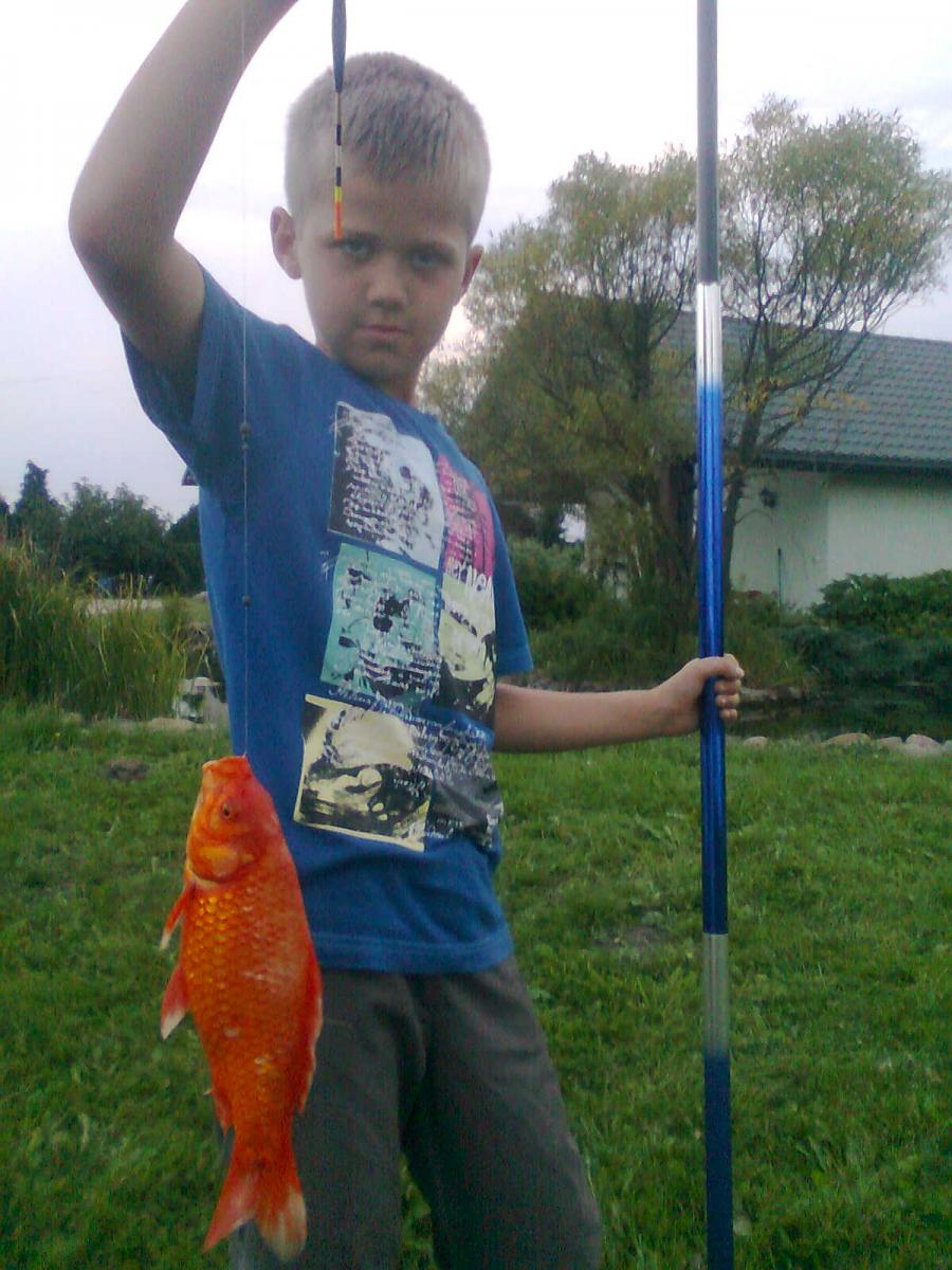 Я, сам, не ужу рыб но мой маленький сынок учится. Он малый чтобы охотиться, ну, рыбалку очень любит. Я хочу вам показать, его первые шаги на рыбалку. У Пшемек семь лет. Простите отца что хочет похвалиться сынком. Я все желаю большой рыбы! С уважением!