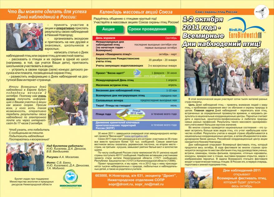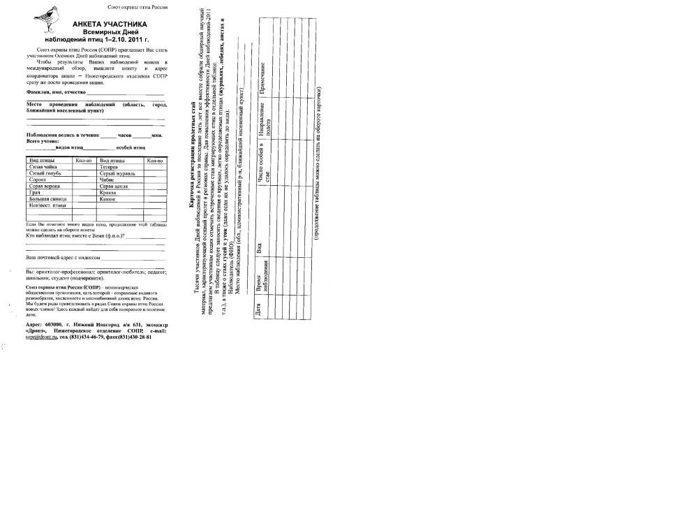 письмом: 603000, Нижний Новгород, а/я 631, экоцентр “Дронт”, Нижегородское отделение СОПР