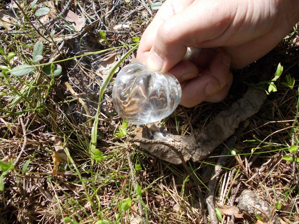 Когда займется, уголек перекладываем в охапку сухой травы и тихонько раздуваем. Сильно дуть не надо - сдуете уголь.