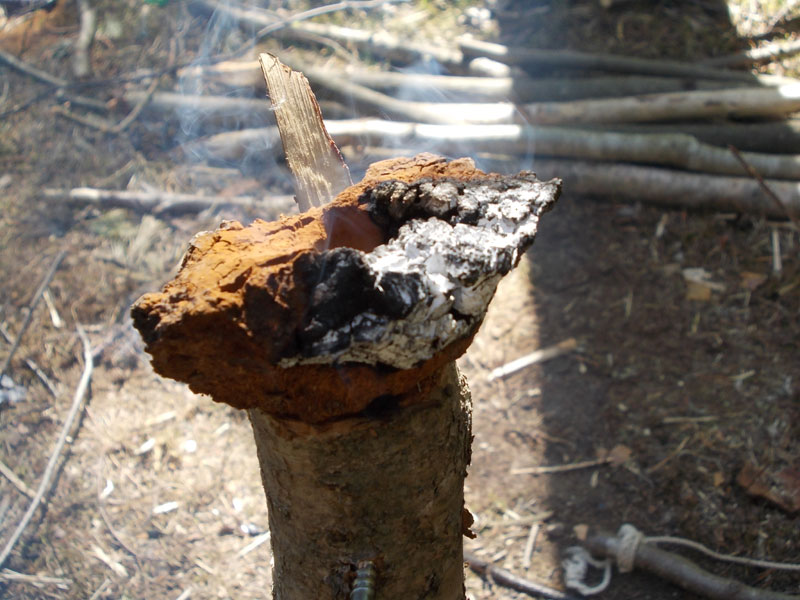 Более того, есть метода получения огня трением и высеканием искр именно с применением чаги. Начинает тлеть от искры.