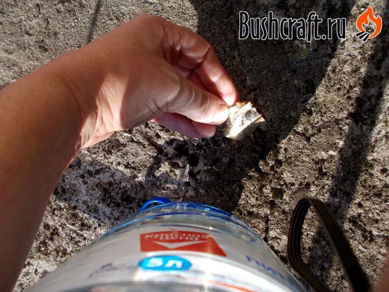 Добыл огонь из пластиковой фляги.