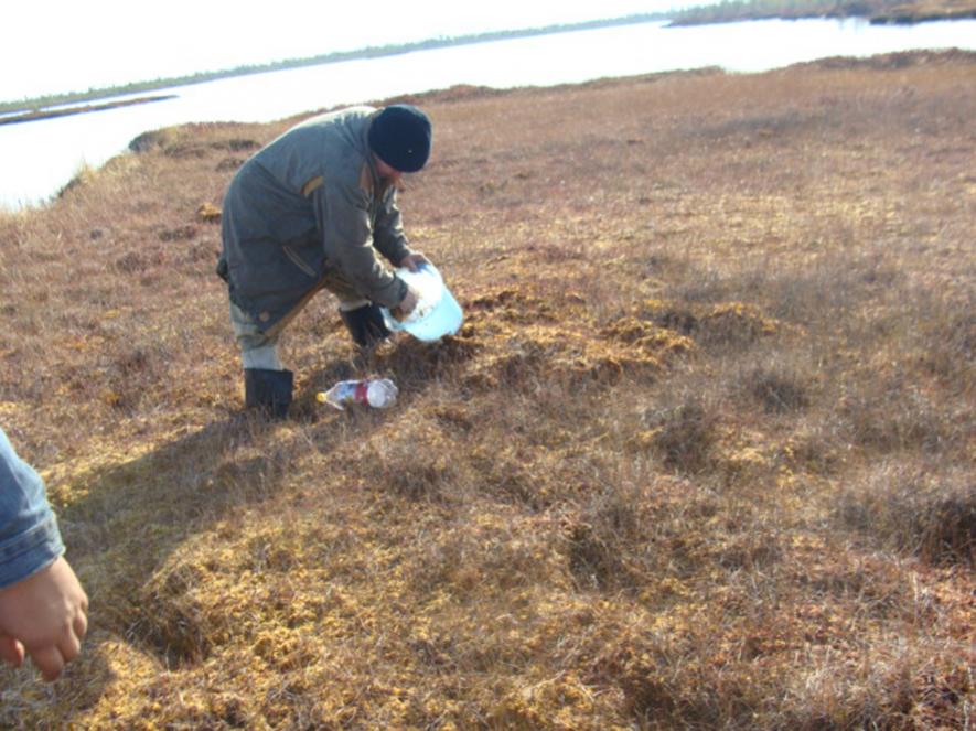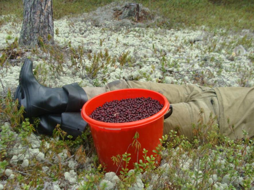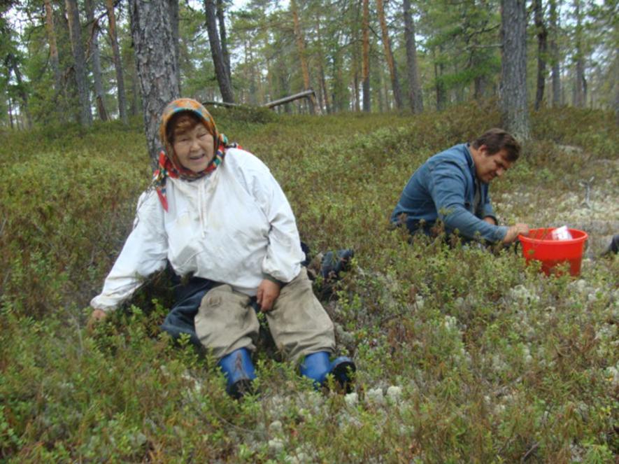 Вскоре появилась хозяйка, она ханты и почему то спросила, сколько ягод мы намерены собрать, что сбило нас с толку. Мы то просто хотели посмотреть стойбище и домой. Но не тут то было, нам вручили ведра и мы пошли к озеру, а хозяин на "Буране" поехал вокруг озера.