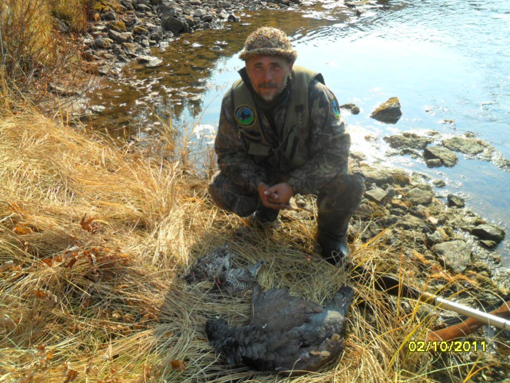 Приловчился бить рябчика тем, что имеется. Дробью два и четыре нуля.