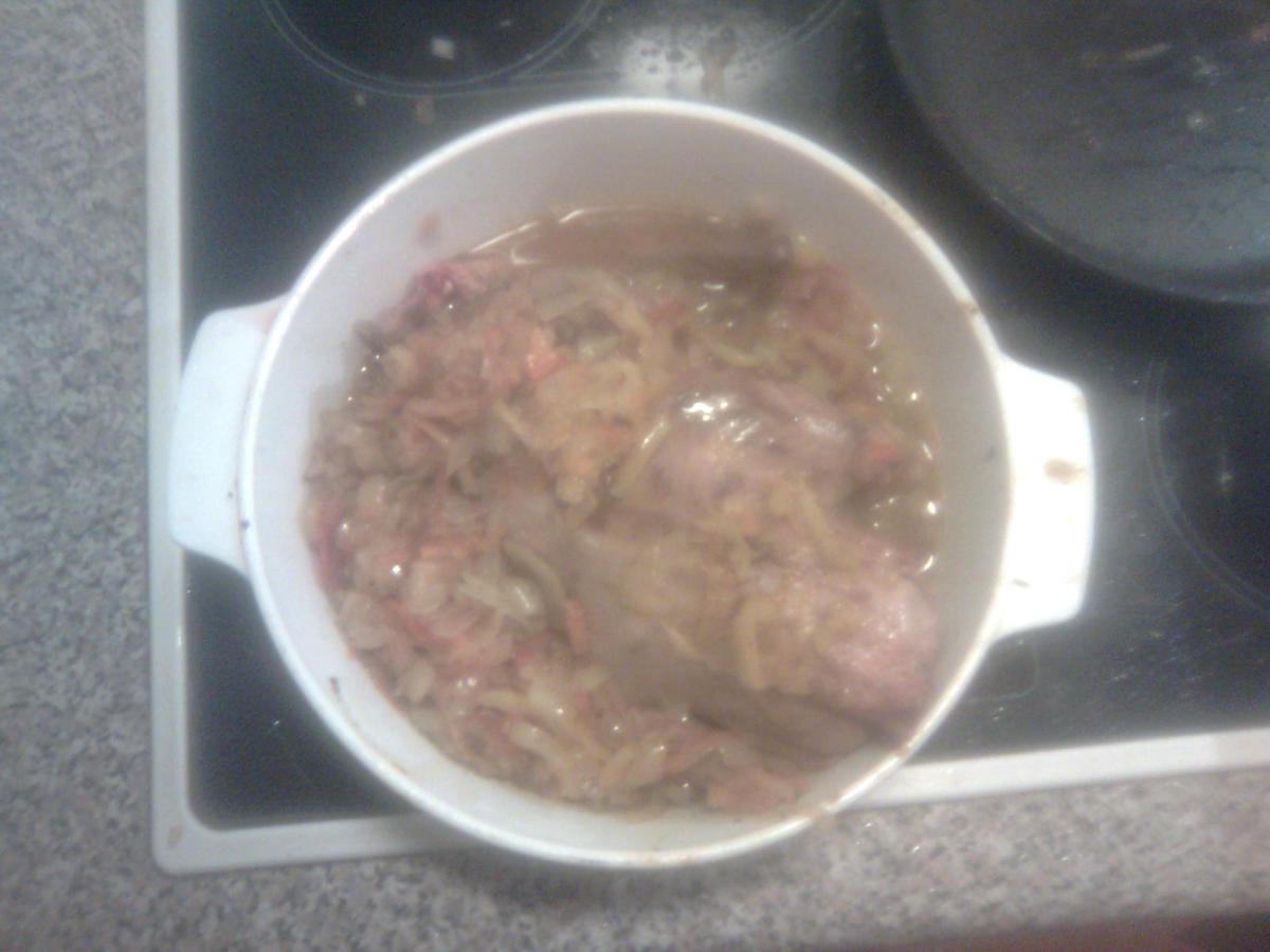 Если готовите в сковороде выньте гуся и жарьте овощи, как написано выше.