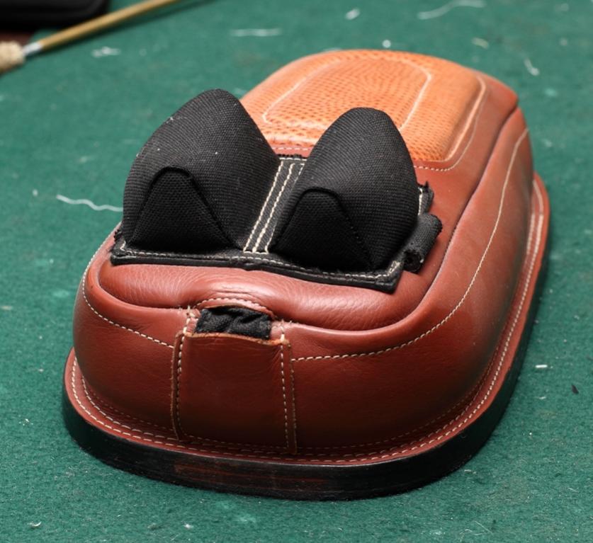 .По выкройкам не знаю что и сказать ,просто на глаз вырезал из уже отживших свое любимых джинс ))). Состоит из трех частей,двух боковых "рогатых" половинок,и одной "полоски" пришитой по "радиусу",прошито на 3-и строчки,потом просто ввернул оставив малюсенькое место под "заправку" ))),после набивания (с помощью воронки) все зашил нах ))) . Внутреннею поверхность "рогов" которая должна соприкасаться с поверхностью ложи предпочтительно обшить кордурой,чтобы лучше скользило.На тот момент я этим не заморачивался ,просто побрызгивал силиконовым спреем для ухода за машиной.Под наполнитель нужно использовать самый тяжелый песок который сможешь достать,насколько помню лучший это "цирконовый" ,но он немного фонит (не критично).Этот я плотненько набил простым речным песком ,предварительно перед этим тщательно его вымыл,что бы избавиться от лишней пыли, и "обжарил" для просушки на плите.