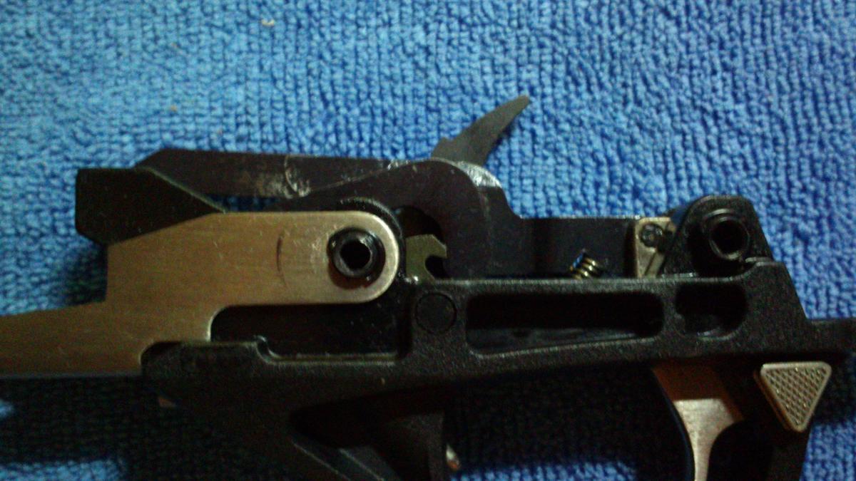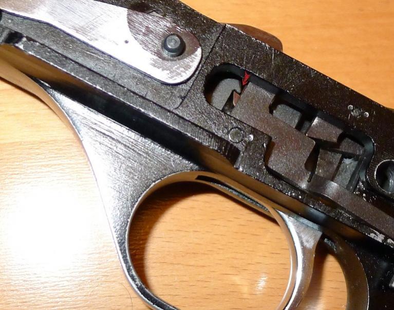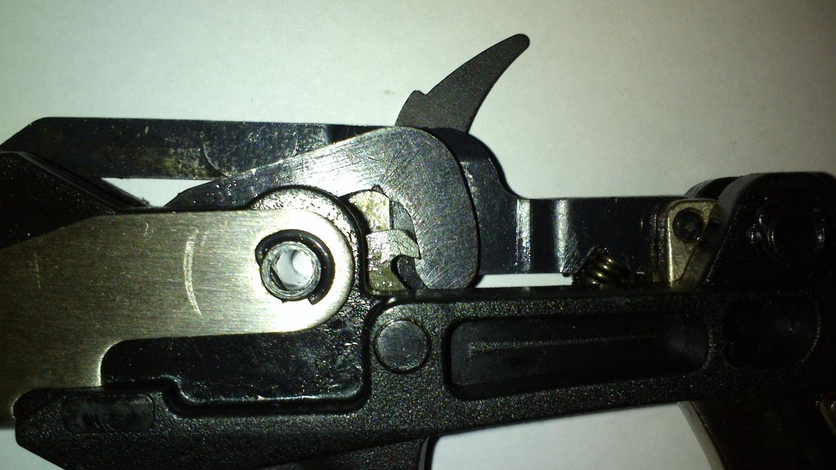 Такой же миллиметровый зацеп на Иж-18МН, во первых, под действием пружин, работает в режиме самовозврата, а во вторых создает усилие спуска около 2кг. Для уменьшения этого усилия некоторые скругляют углы, что приводит к снижению усилия и делает спуск не ружейным, а похожим на винтовочный.