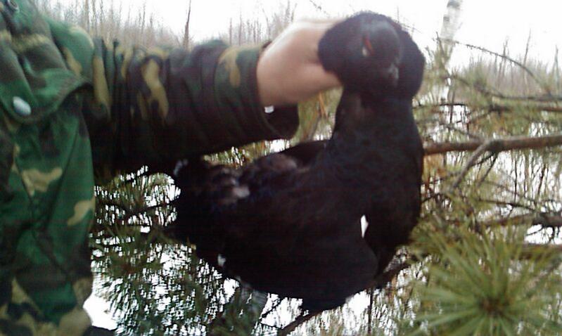 Сегодня добыл первого в эту зиму тетерева. Выехал заранее, еще затемно. Пришлось ехать одному, так как напарник в очередной раз подвел, но это отдельная тема. Взял с собой 4 чучала тетеревов. Приехал на место, выбрал редкий хорошо просматривающийся березняк и выставил на высоких березках чучала. Присел под ель и стал ждать. Начало светать. Не прошло и 10 минут как впереди услышал хлопанье крыльев. Так как маскировки я особого внимания не уделял, стрелял сразу, не стал ждать когда тетерев сядет на дерево. Бил с получока 1кой с 40ка метров. Первым выстрелом зацепил, вторым свалил камнем вниз.Прошла мысль, что разбил вдребезги. Сразу запреметил место падения и пошел к нему.Вот только я не заметил, что за первым тетеревом летел второй, который сразу меня сфотографировал и отвернул в сторону. Третей моей ошибкой было то, что вместо того, чтобы сесть и замаскироваться, я принялся фотографировать на мобильник свой трофей. Тут же услышал за спиной звук хлопающих крыльев. Мобильник в снег, ружье в руки, но было уже поздно. Во всяком случае трофей добыт и на сегодня уже хватит. Возвращался домой с чувством грамотной охоты. Все сделал правильно и результат не заставил себя ждать.<br>Жена попыталась дома теребить, никак, перо с кожей лезет, залили кипятком, все равно не помогает. Пришлось с кожей снимать. Завтра будем тушить. Может кто рецептик подкинет. Эх, и водочка датская в морозильнике, наверное совсем уже замерзла.:12:
