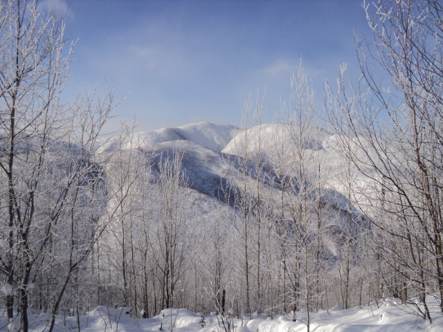 С собой привезли бортовую , собрали вездеход. Снега нет, идти некуда, занимались хозяйственными делами. Соорудили приличную баню, в рубленом домике из бруса, на трубу печки одели двух ведёрный бачок , наложили камней. Сначала воду грели в вёдрах, позже поставили на печку бак на 90 литров, банька получилась отличная. Снег выпал только в середине ноября, давно такого не было, по крайней мере на моей памяти, обычно в конце октября всегда снег лежит. Подъехали Коля с Лёхой, веселей стало, со снегом начали обходить угодья. Обнаружили следы сохатых двух штук, правда трёх дневной давности и припорошенные порошей, определили откуда пришли, куда пошли и где примерно могут быть. Как всегда разработали план "Барбароса" на следующий день. Утром мы с Колей десантировались с вездехода первыми, у Лёхи с Санькой задача была переехать распадок, забраться на сопку на водораздел, под вершиной оставить вездеход и водоразделом идти в сторону Горелого ключа.