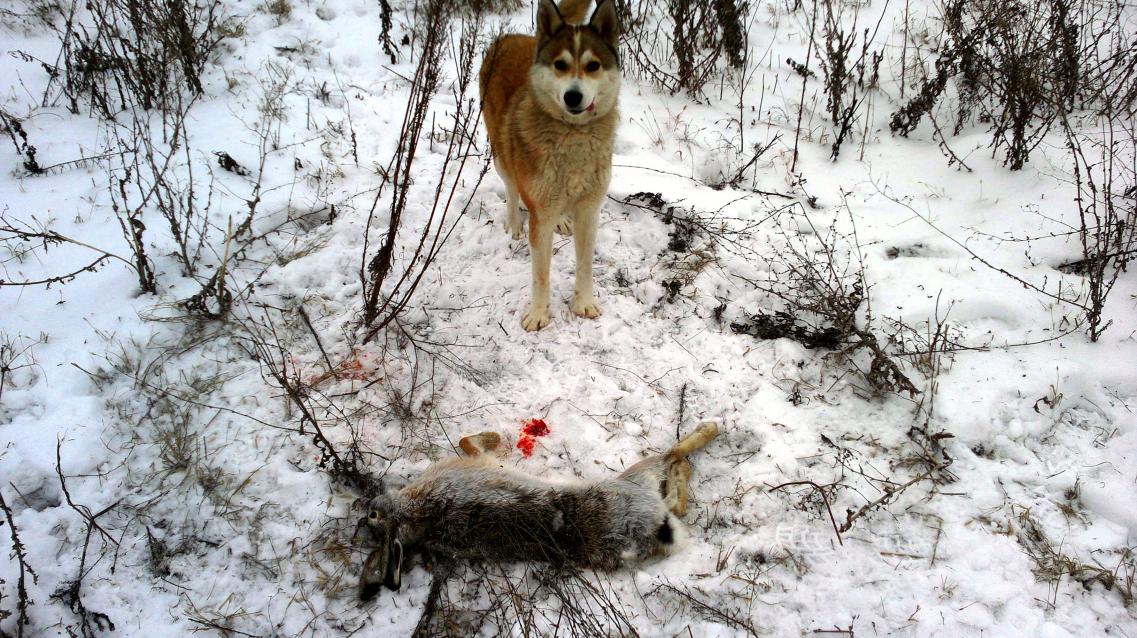 Иду за ним. Увидел его от себя примерно в 1 км. Кое-как догнал. Обсудили - решили - постановили = я по следу - он "на номере" и ... И ведь вытропили, хотя чего тот подран только и не выкидывал = и через речку уходил 4-жды и огороды "бороздил" в деревне и по оврагу 2 круга дал. Вобщем карауууллл, спасииитеэээ!!! Ну никак не удавалось окружить ни моему дружку, ни не успеть мне на встречную сдвойке. И вот долгожданное "баццц" дружка и ор под танец бравого и довольного охотника = "ДО-ШЁООО-ЛЛЛЛ".