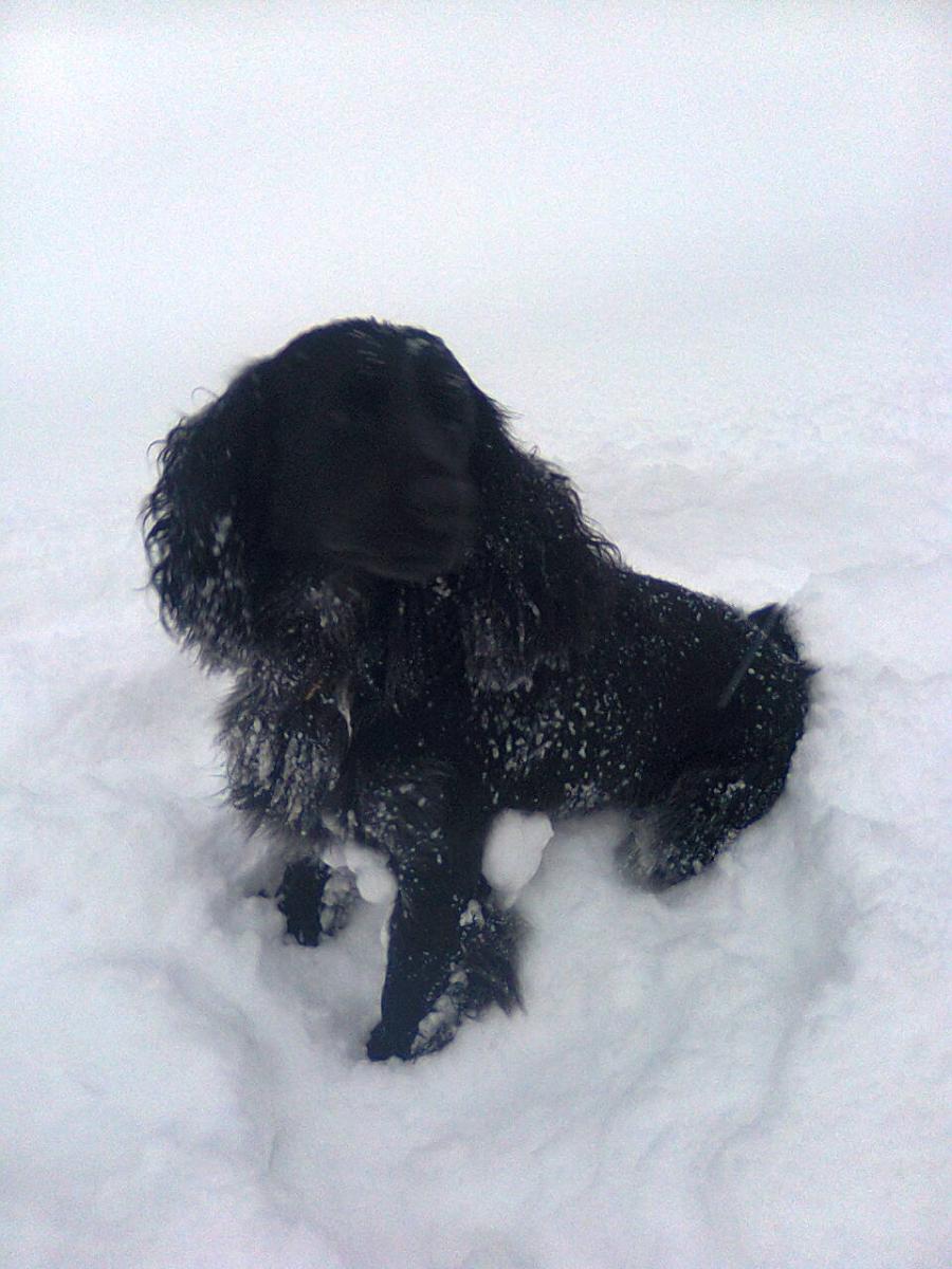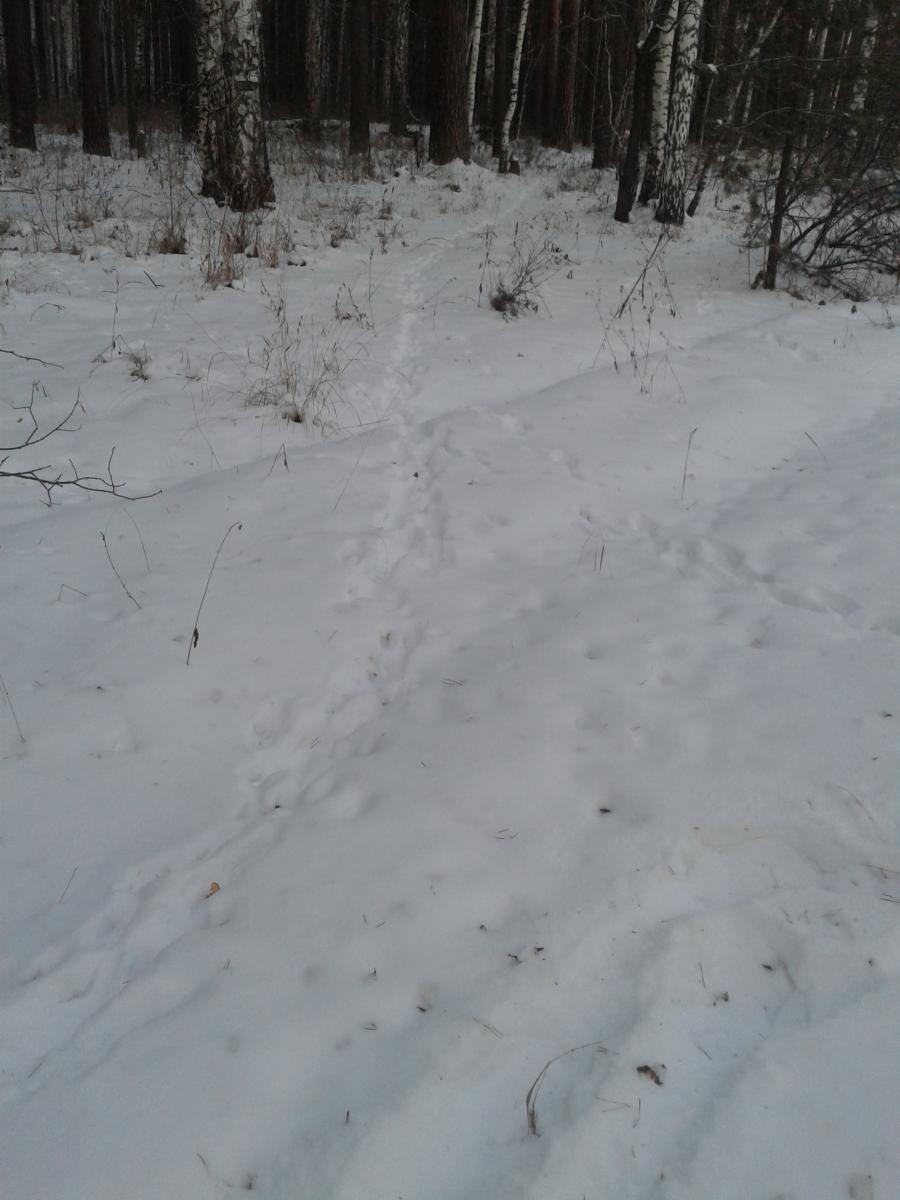 А что же с тем вчерашним дуплетом? Предлагаю дружку обойти место вчерашней охоты тех охотников. Дружок идёт вправо - я влево. Через 20-25 мин. слышу вдалеке дуплет - не друга это. Иду далее и натыкаюсь на его следы, а он ... А он тропит неестественный малик русачка - задние отпечатки как то в раскоряку, а передние слишком "вместе", прыжки коротки и как бы не стелющиеся, а как от лягухи - приземление сверху. Бррр, неужто подран? От вчерашнего дуплета?
