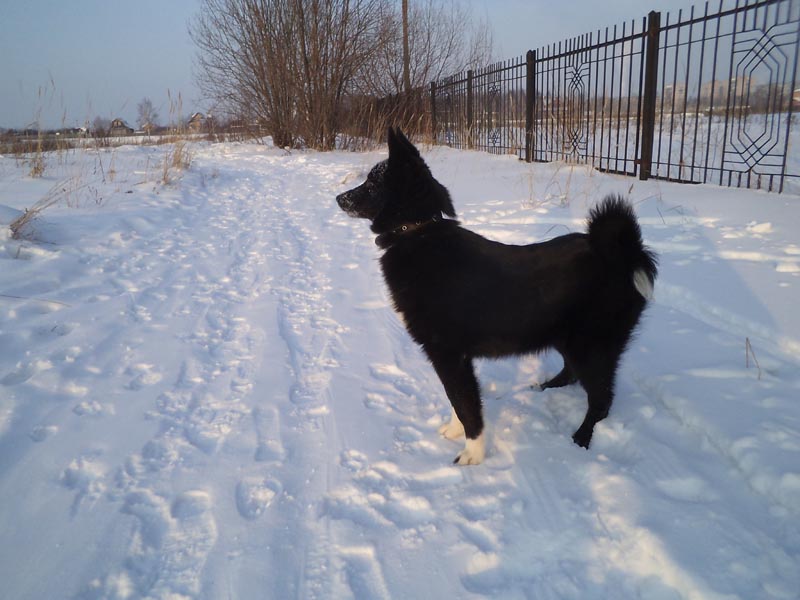 Ого, здоровая будет)))) Значит стать в ВСЛ. Тут недавно такой здоровый кобель бегал у нас. Окрас чистый РЕЛ, а помесь с ЗСЛ. Видимо пигментацией покровов РЕЛ-ки всех забивают. Вот и у Айно Виктора помесь с карелкой, а черная.