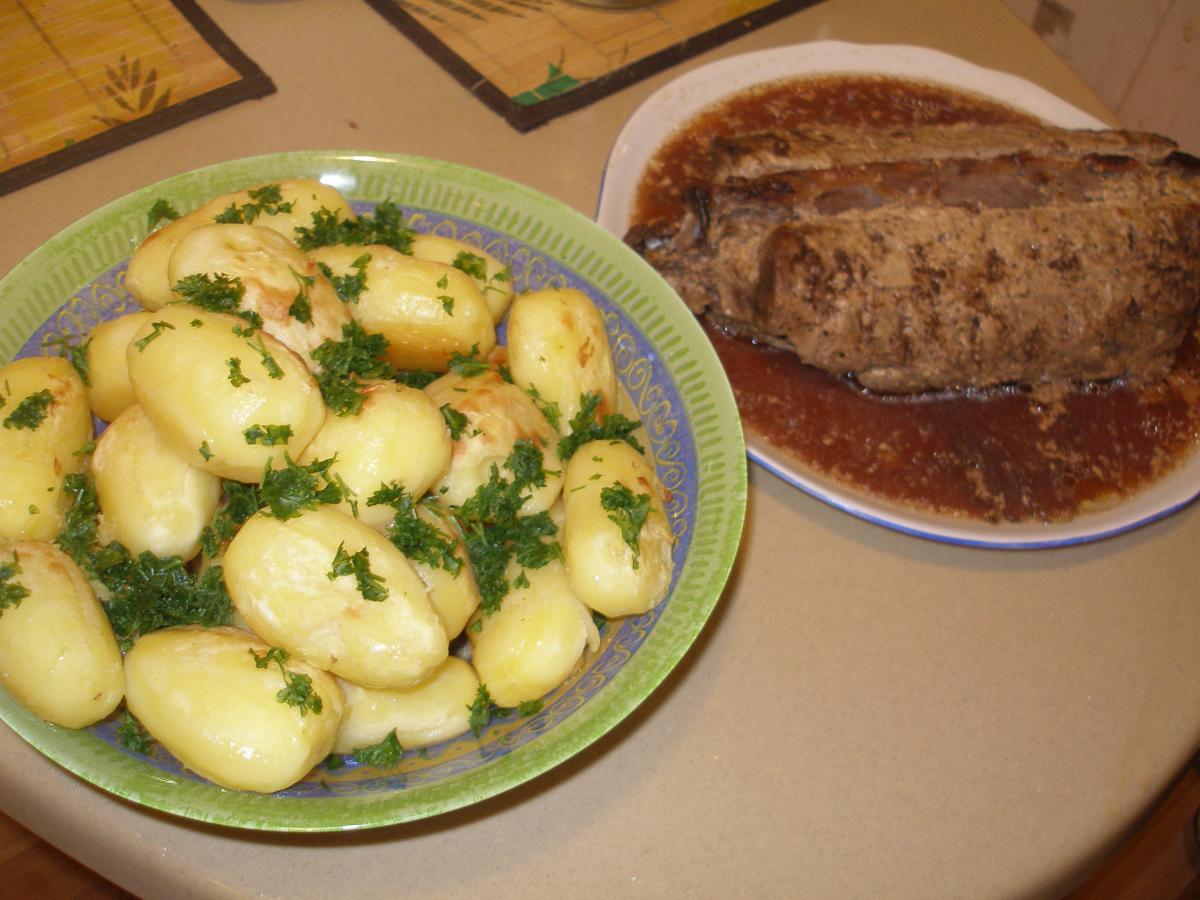 Пока мясо маринуется для гарнира отварить Картофель почти до готовности и подготовить его для затекания немного полив оливковым маслом.