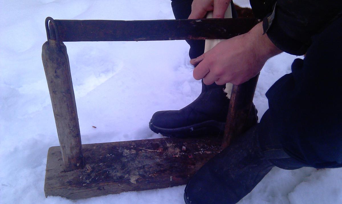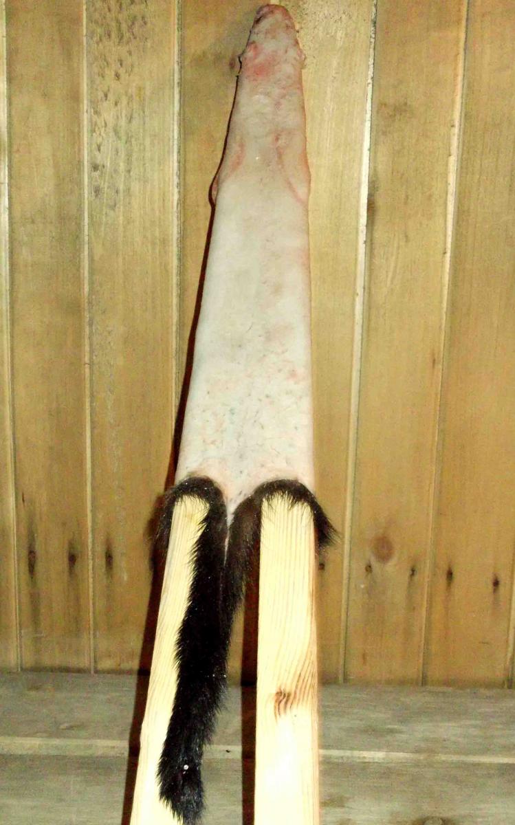 Пишу для новичков. Господа бывалые ,если есть что дополнить не пропустите. итак мы добыли например куницу, начинаем снимать шкурку: делаем надрез по задним лапкам от пятки к анальному отверстию и отделяем шкуру от мяса. Хвост удобнее всего выдергивать из шкуры, зажав ее пальцами(шкуру). Если он не идет, можно помять хвост руками и повторить попытку. После этого шкуру стаскиваем до передних лап, не боясь порвать. С небольшим усилием подрезая ножом, вытаскиваем передние лапы до подушки (если нужно, сохраняя коготки). Далее стаскиваем шкуру до ушей. Уши, глаза и нос необходимо подрезать ножом. Хвост разрезаем, вставив в него нож, плавным движением. После снятия шкурку нужно обезжирить и удалить с нее остатки мяса. Это удобно делать на специально изготовленном скобеле(металлическая полоса шириной 3 см, толщиной 3 мм и длиной 50 см, с односторонней заточкой как в ножницах, закрепленной в деревянной станине). Жир и мясо просто соскабливаются. Очень часто мех бывает грязный(кровь, песок и т.п.). Снятую и обезжиренную шкурку стираем в теплой воде со стиральным порошком, выжимаем и одеваем на правилку. Натянув шкуру, вбиваем в задние лапы по гвоздику. Чтобы кожа задних лап и хвоста не сворачивалась при сушке, накладываем на них полоски бумаги. Шкуру нижней челюсти, так называемый язычок, не прибиваем, чтобы он сох дольше, чем остальная шкура. Это нужно для того, чтобы можно было вывернуть шкурку, не порвав ее. Когда шкура высохла(как правило 10-12 часов), снимаем ее с правила, разминаем руками и начинаем выворачивать мехом наружу. Это удобнее делать, начиная с головы, как бы заправляя ее внутрь шкуры. Затем одеваем ее обратно на правило уже мехом наружу и приклеиваем полоску бумаги на невысохший еще "язычок". После того, как мех высох, его можно расчесать или просто несколько раз встряхнуть.