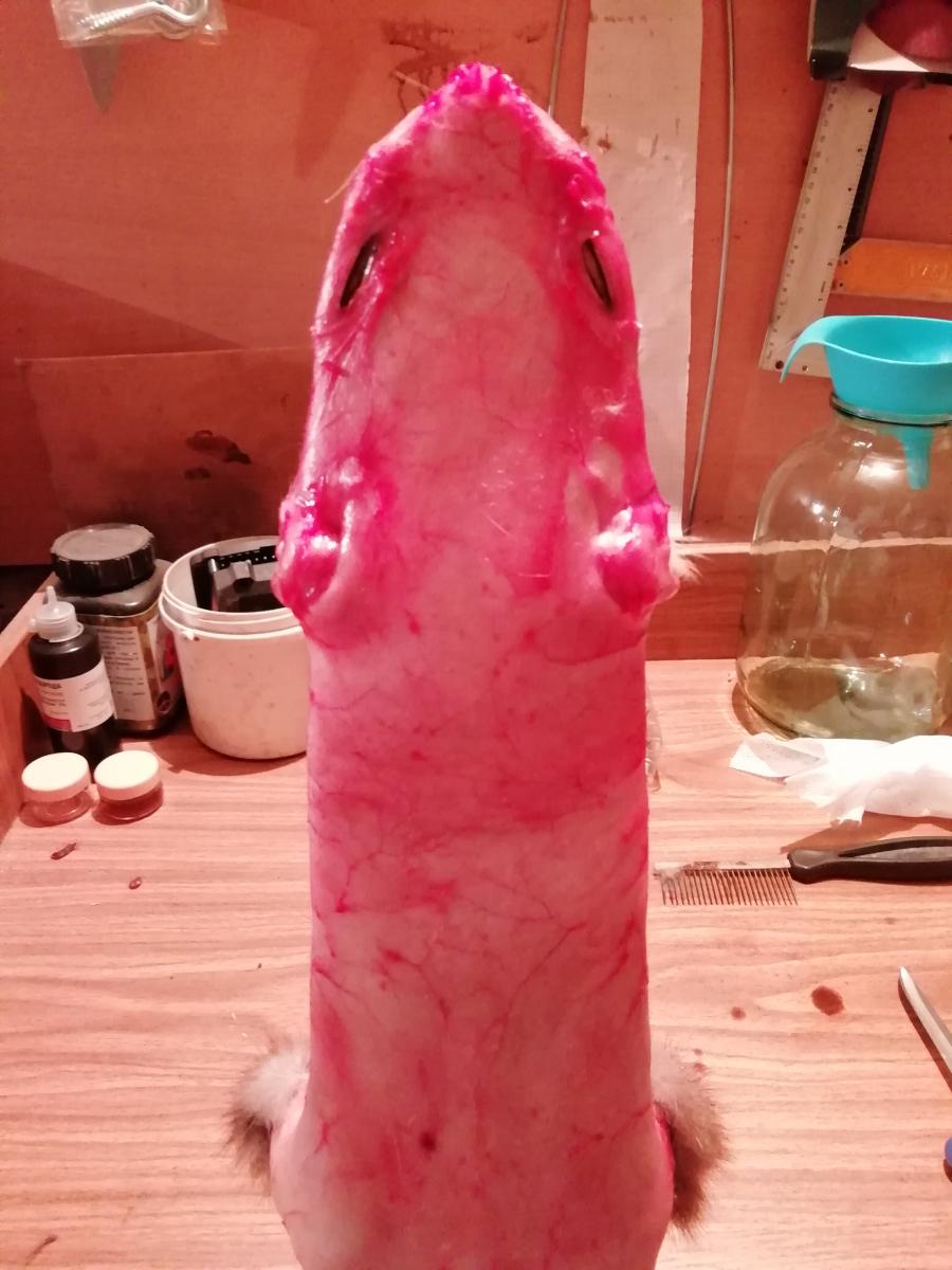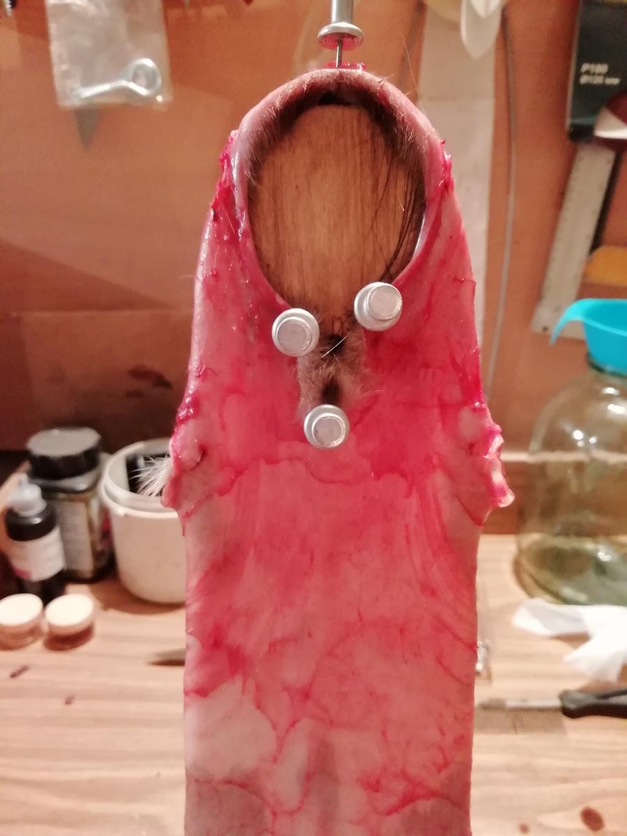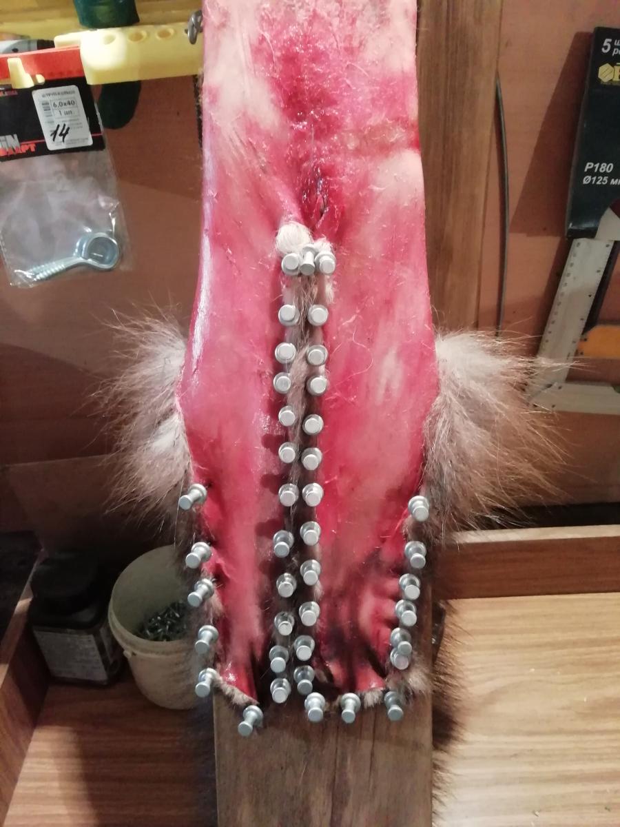 Как только шкурка начнет подхрустывать, стягиваем ее с пялки и выворачиваем, а затем вновь натягиваем на ту же пялку и досушиваем до кондиции.