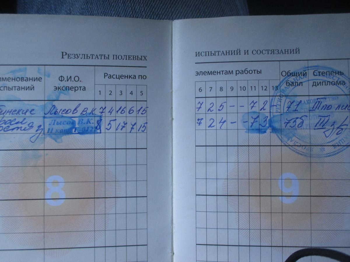 Д 3 ст. з.б. :).......75 баллов. Одного балла за мастерство не хватило до второго, завел он ее в дурное болото....а там воды по самое не могу, выправила конечно же, но общее впечатление испортила :)