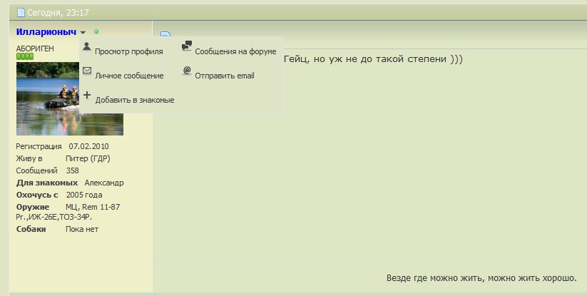 Там: Просмотр профиля, Личные сообщения, Добавить в друзья, Сообщения на форуме. Всё.