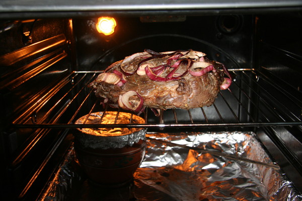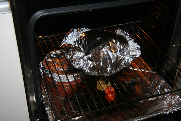Мясо покрывается корочкой, и дабы не растерять его сочность, вынимаем его и укутываем в шубуку из фольги …