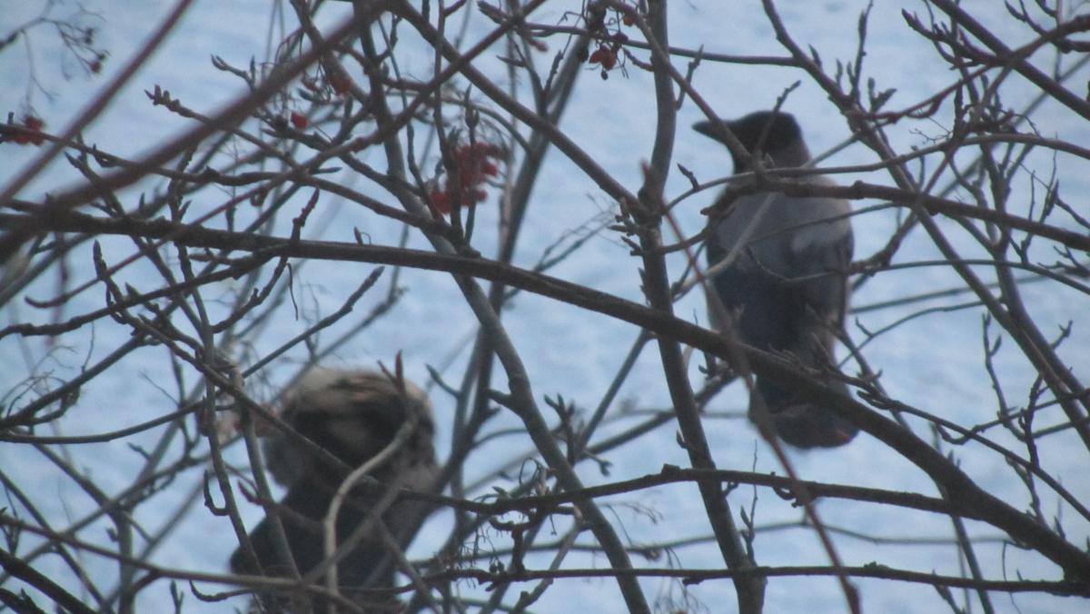 Сан Саныч,это они в городе вегетарианцы,а я сегодня зайчика тропил,так эти каркуши раньше меня его на лёжке заметили и атаковали.Это надо было видеть,как он от них лапами отбивался,лёжа на спине.Отбился таки,но охоту эти сволочи мне испортили,завтра пойду снова его искать.что вороны едят рябину