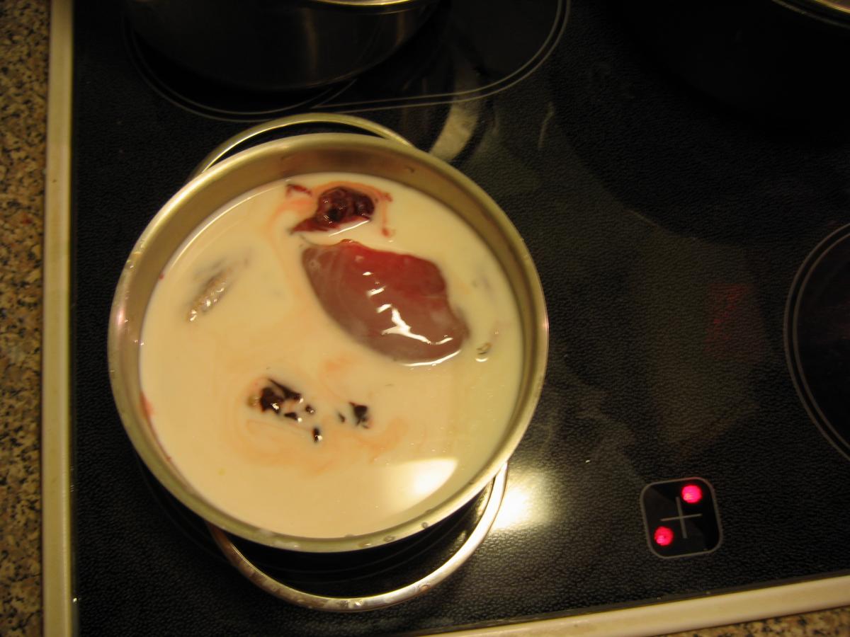 Кладем рябчика в холодное молоко и, снимая пену, доводим молоко на медленном огне до образования мелких пузырей. Молоко не кипятим! Снимаем молоко с рябчиком с огня и даем отстояться минут 15.