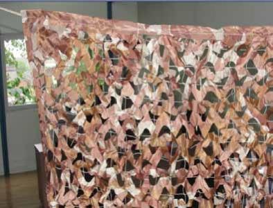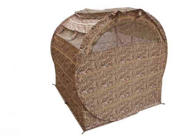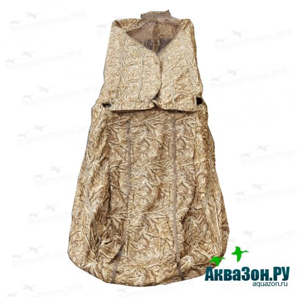 над головой, тесьмой для максимальной маскировки, колышками для крепления, камуфлированным чехлом. Ткань изготовления