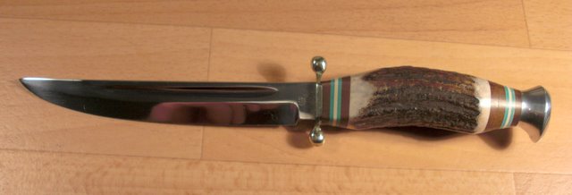Господа охотники.Пожалуста оцените нож. 87641586.jpg87641597.jpg87641611.jpg87641657.jpgХочу продать охотничий нож Hubertos Solingen.Длина лезвия 11,5 см,толщина 4 мм.рукоять из рога оленя.Состояние как новый,ножны кожанные.