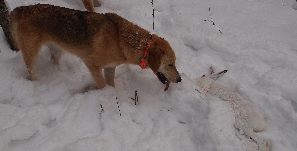 Всем привет!!! Ну вот и закончился очередной сезон. Погода в целом благоприятствовала,за исключением сильных морозов в январе-феврале. Долго держался чернотроп,снега было немного. Зайчишек в этом сезоне прибавилось. Это радует. Взято 25 беляков. При том,что во время сезона ещё происходила нагонка Песни. Так что поохотились вполне нормально,собаки радовали хорошей работой. Главное,что молодая принялась хорошо и уверенно. Хороший задел на весенне-летнию нагонку. Да и бабушка Флейта ещё вполне,правда форму набирала долго.