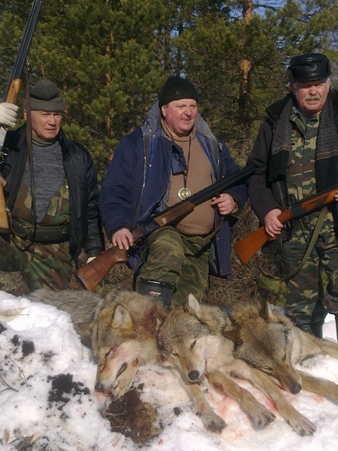 егеря охотобщества "ВОЗРОЖДЕНИЕ" офлажили 1 кв.км болота с тремя волками внутри. А сегодня охота успешно завершилась - один матерый, его подруга и одна прибылая.