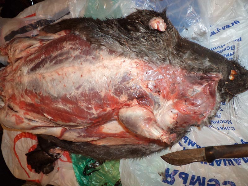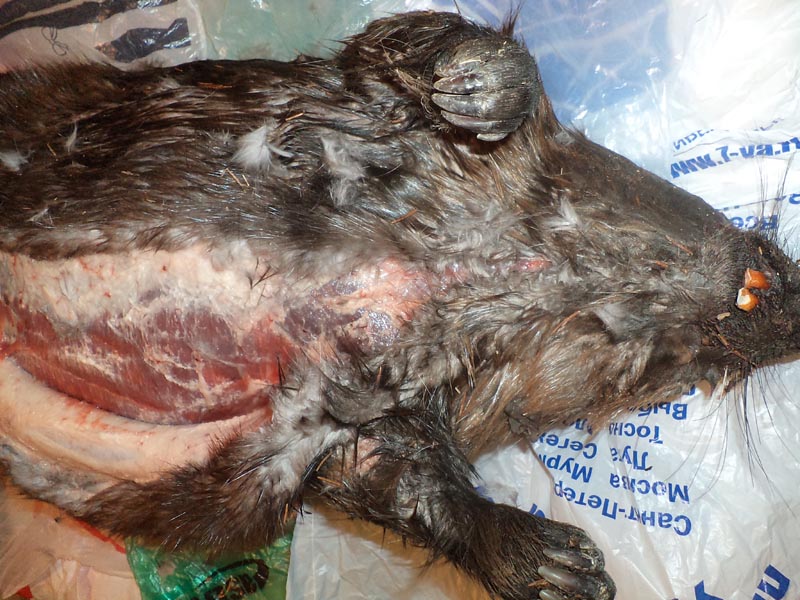 Бобр свежий, шкуру снимаю на столе.