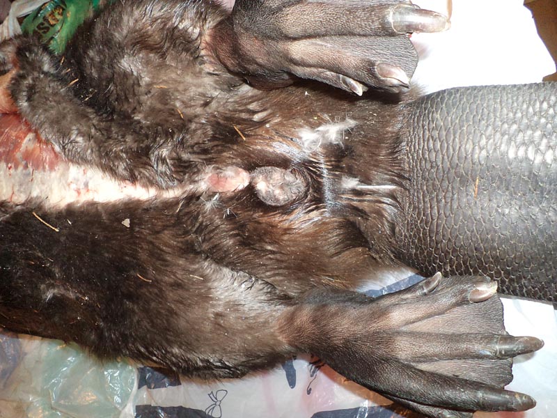 Зашивал порезы, которые допустил при съёмке шкурки.