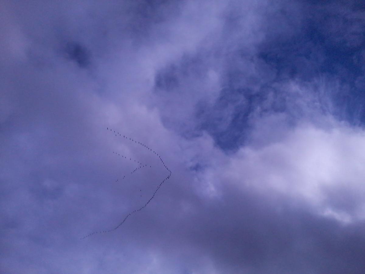 Первая стайка чуть-чуть до меня не дотянула...метрах в 100 прошла чиркая макушки деревьев